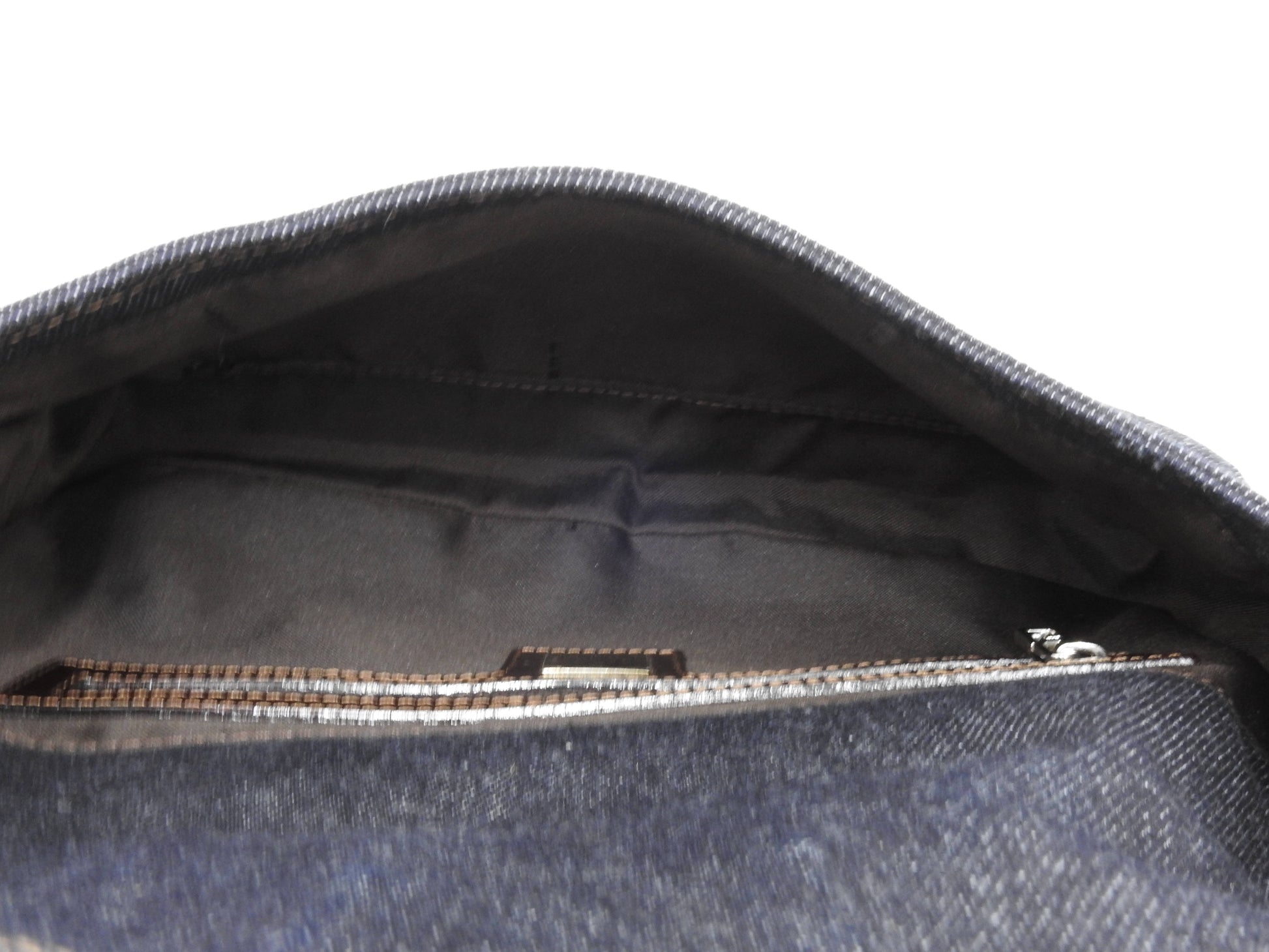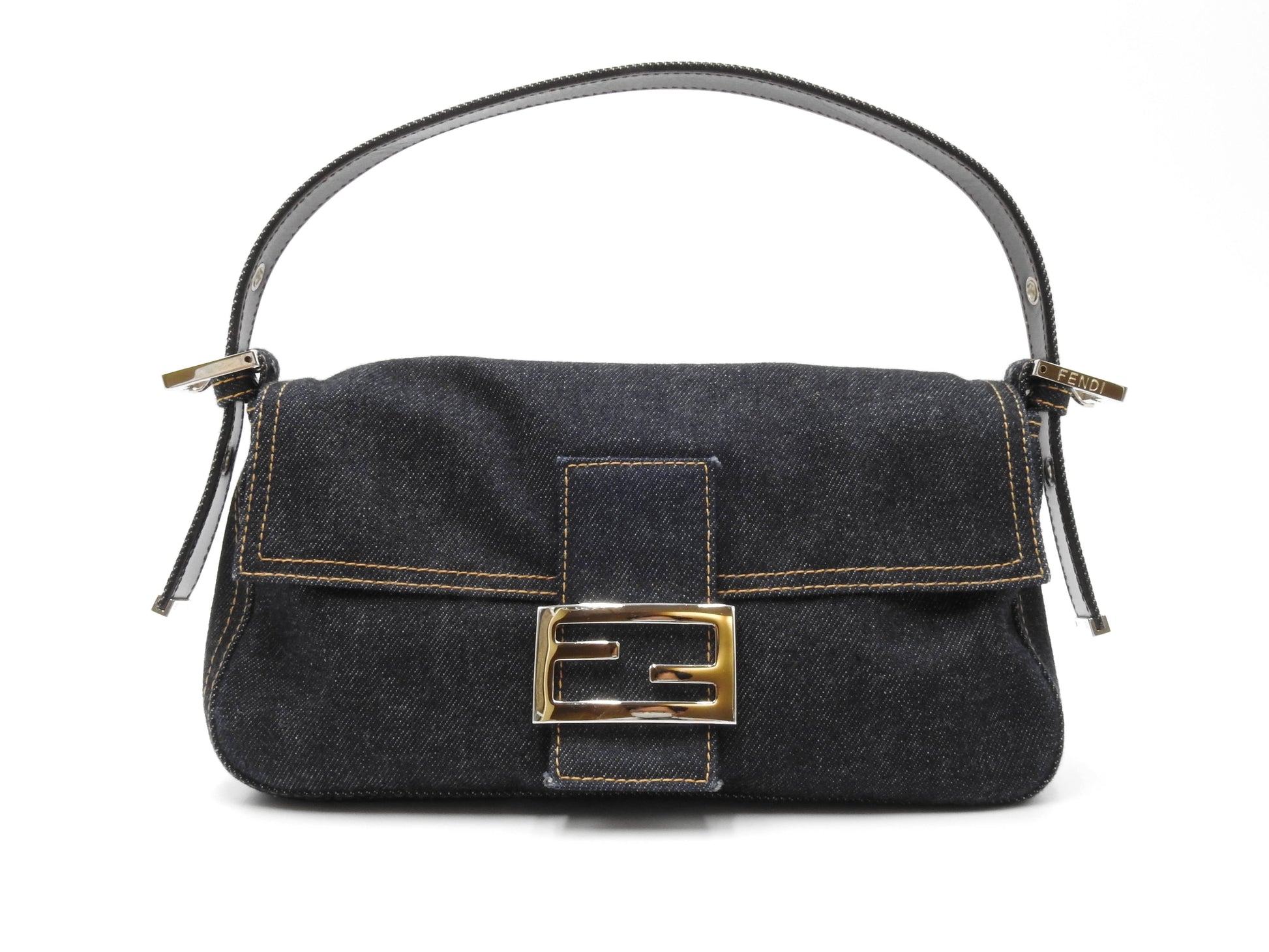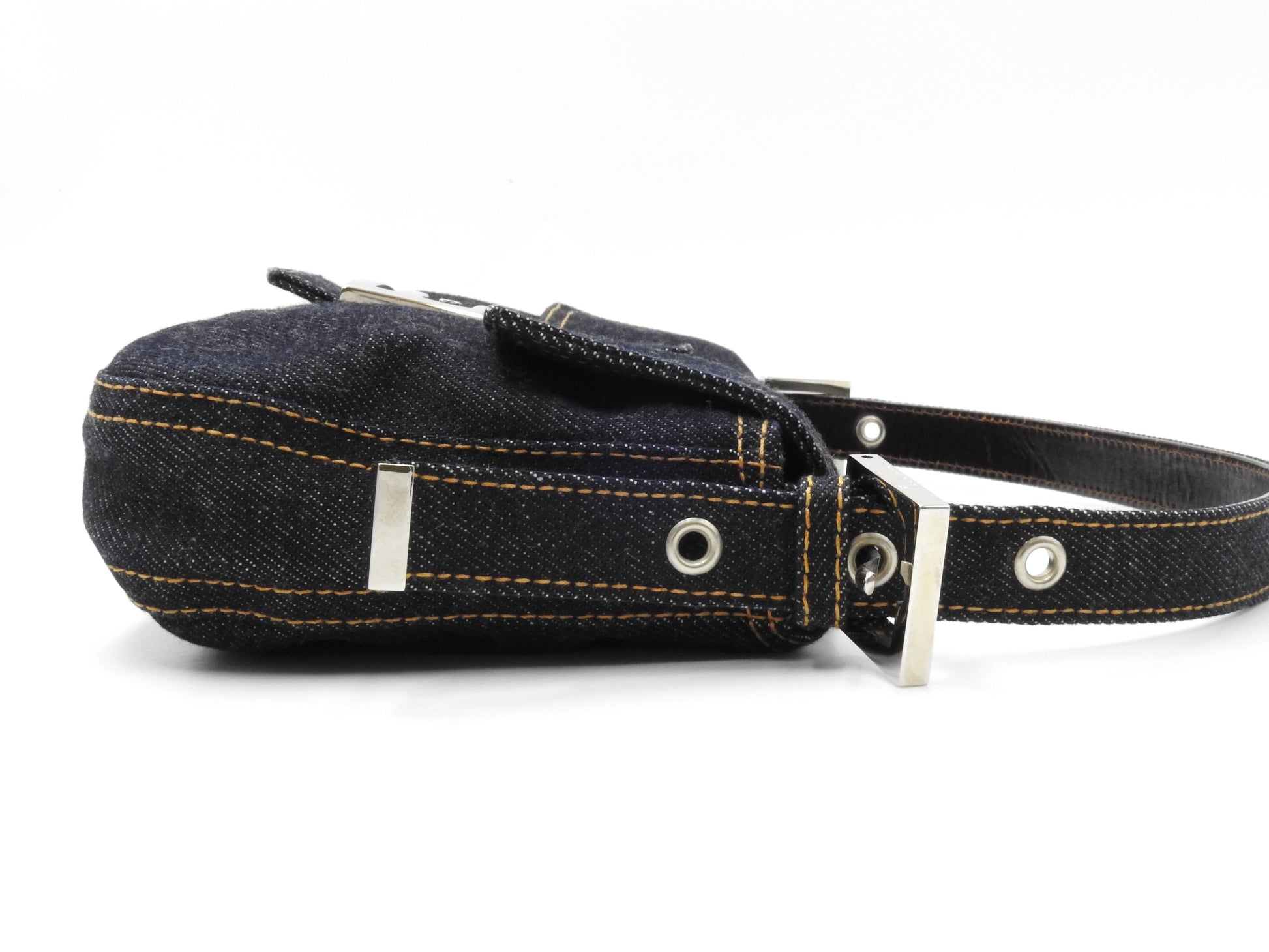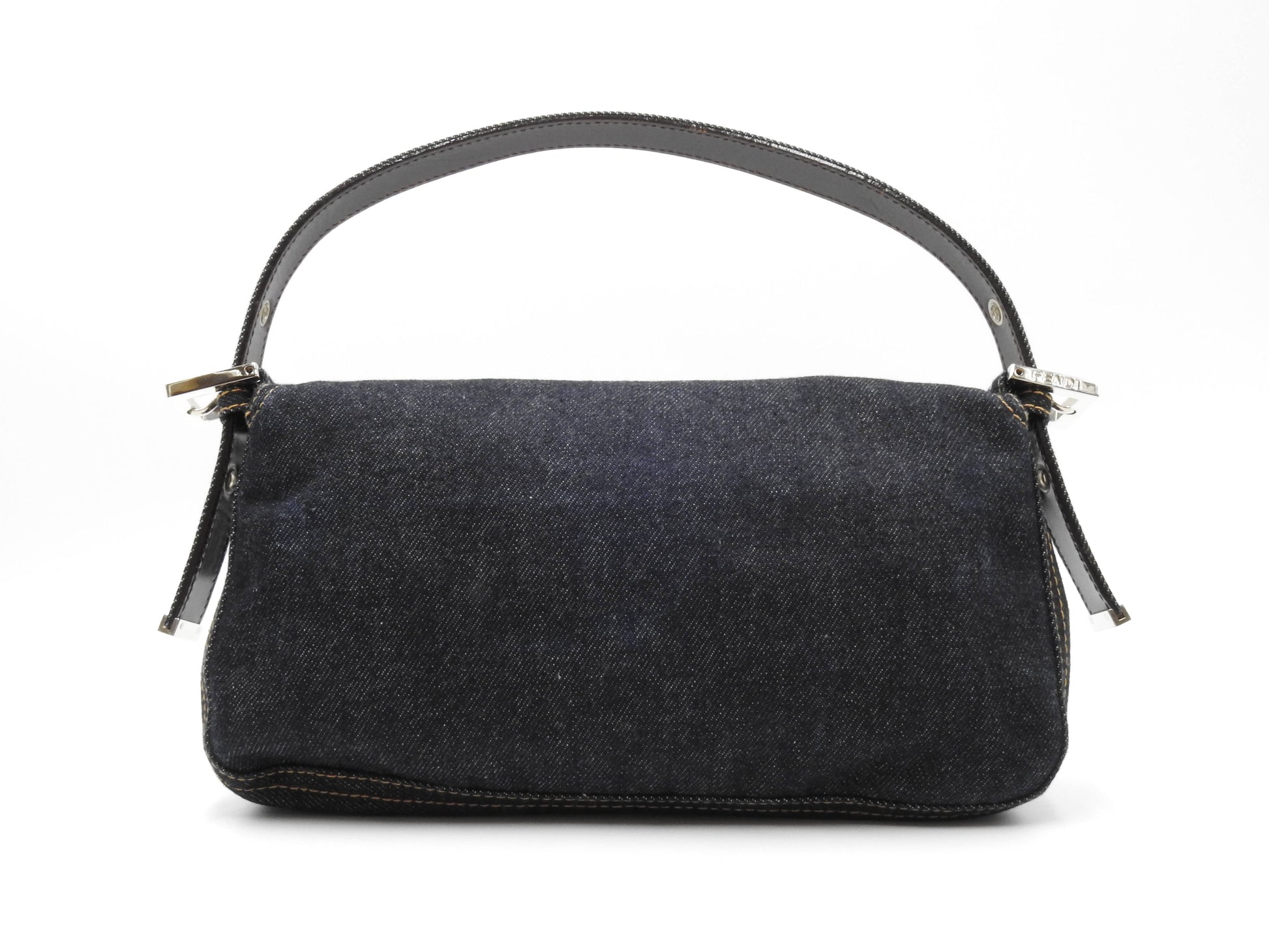 Auth FENDI Mamma Baguette Shoulder Hand Bag Denim Navy Silver Hardware