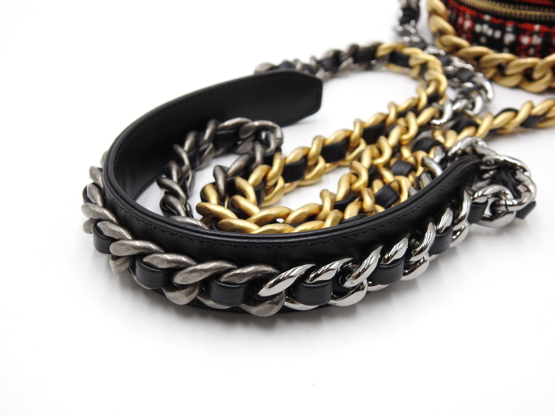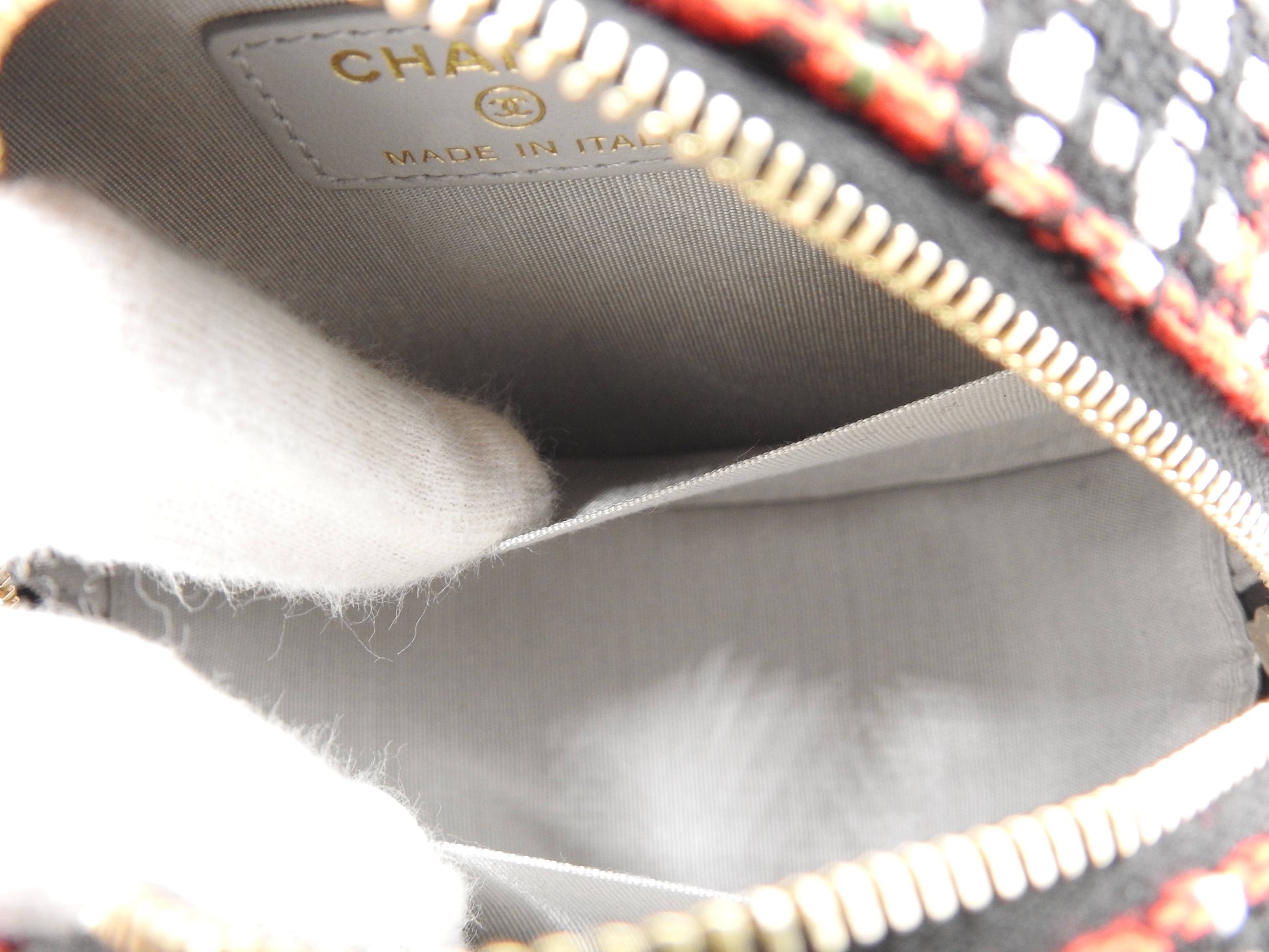 CHANEL 19 Round Chain Clutch Shoulder Bag Tweed Leather Red Black AP0945