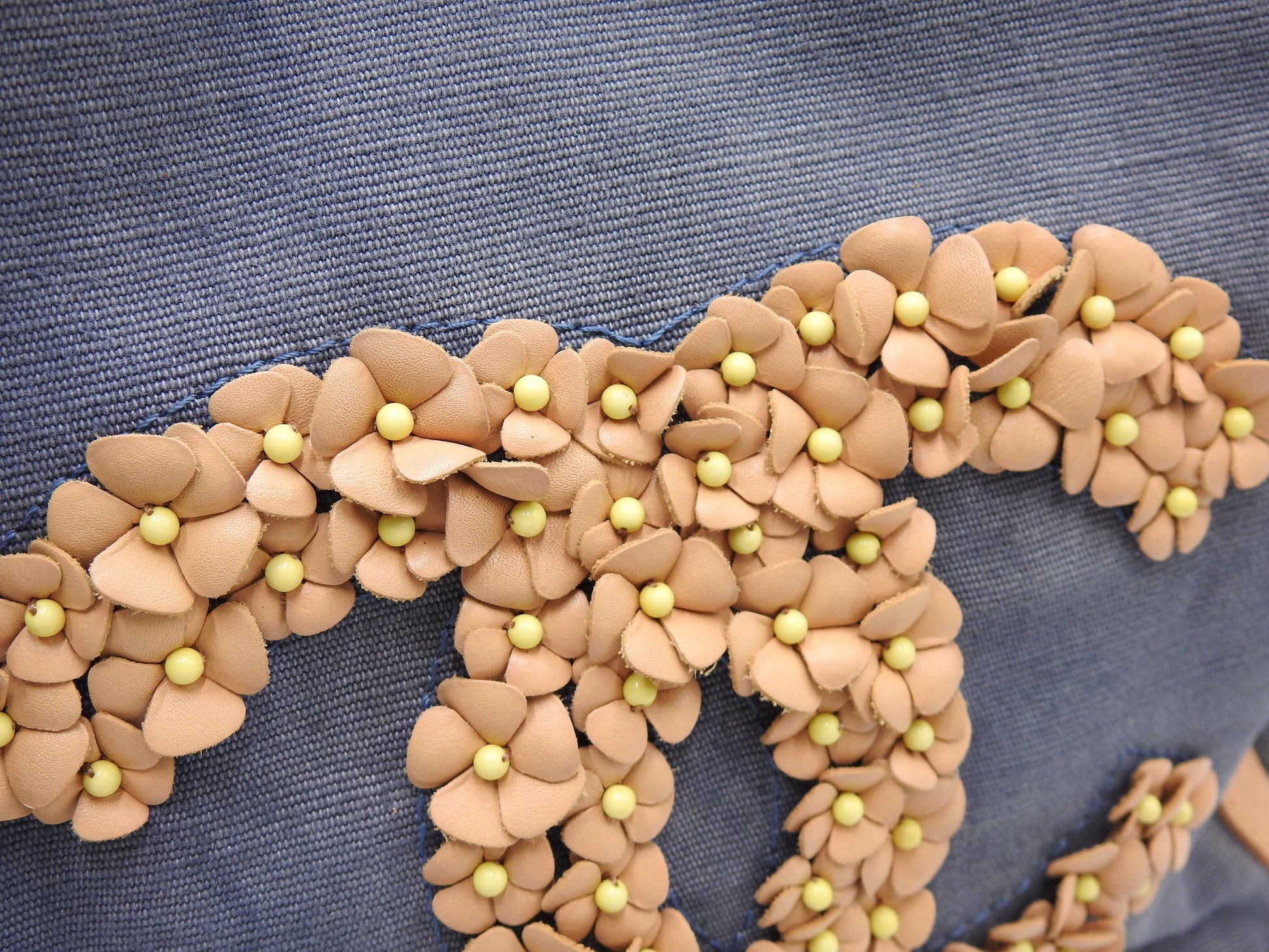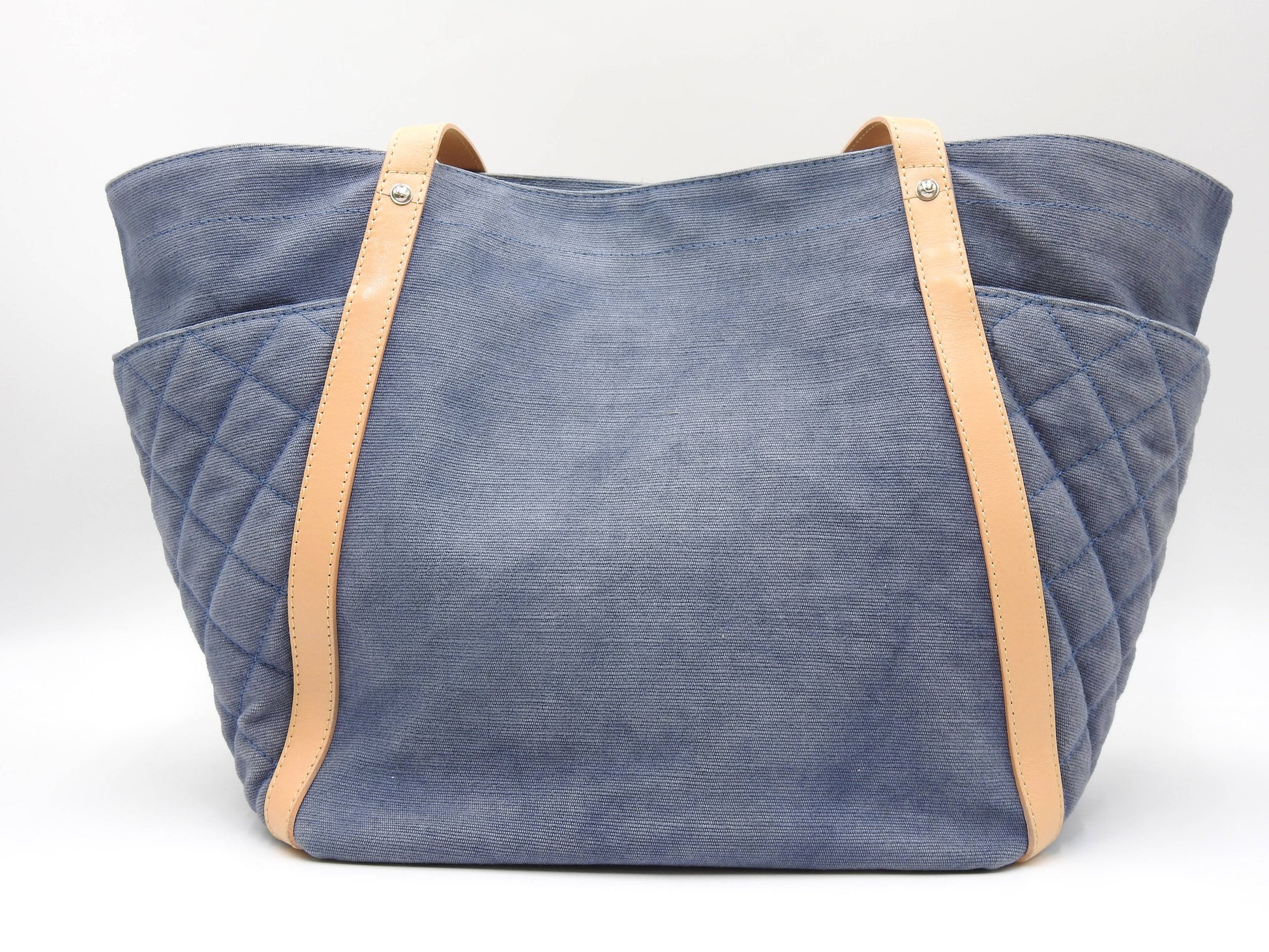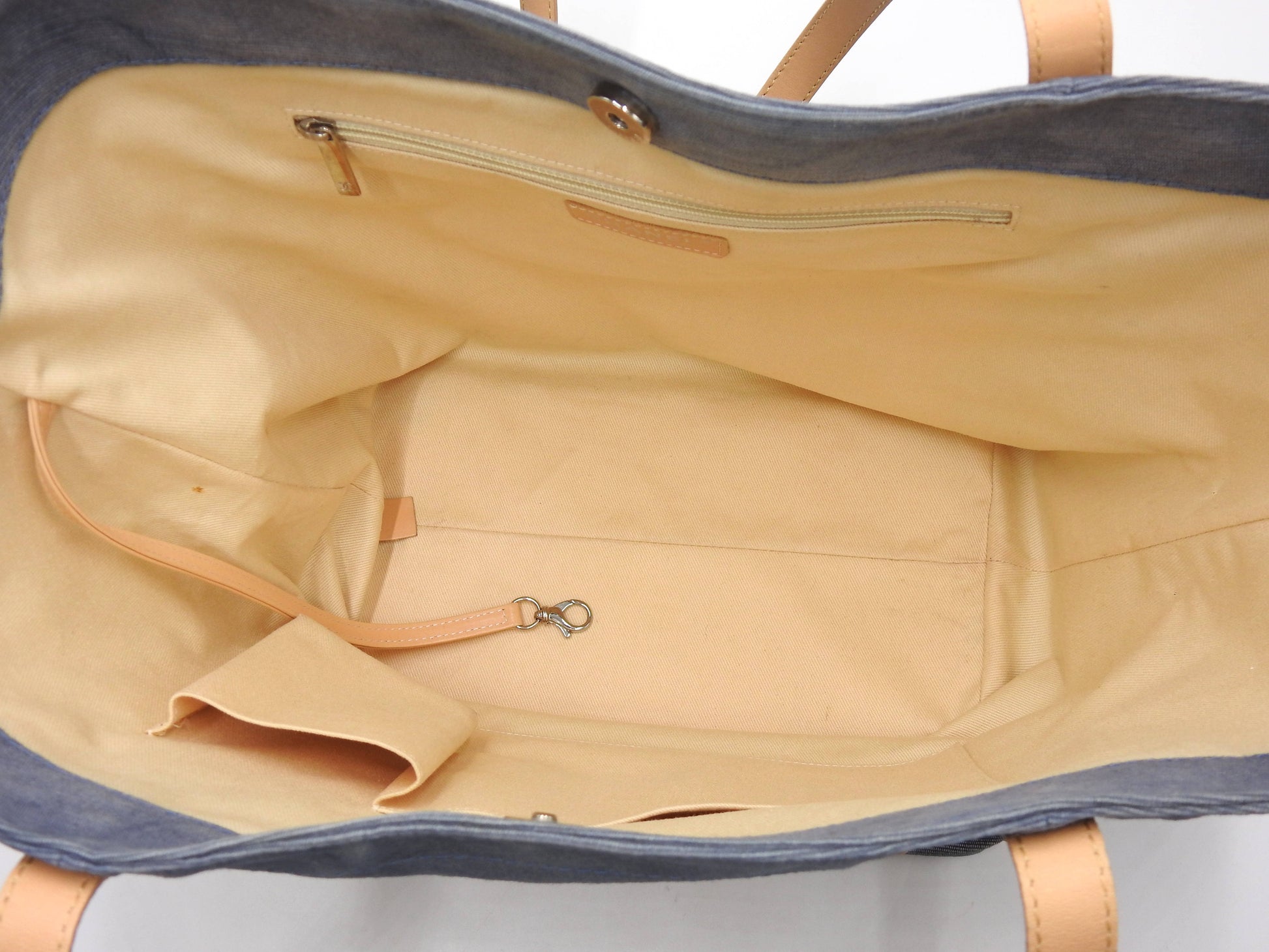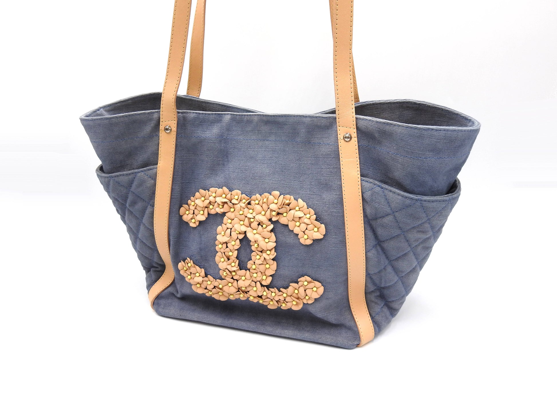 CHANEL CC Flower Shoulder Tote Bag Washed Denim Leather Blue Beige