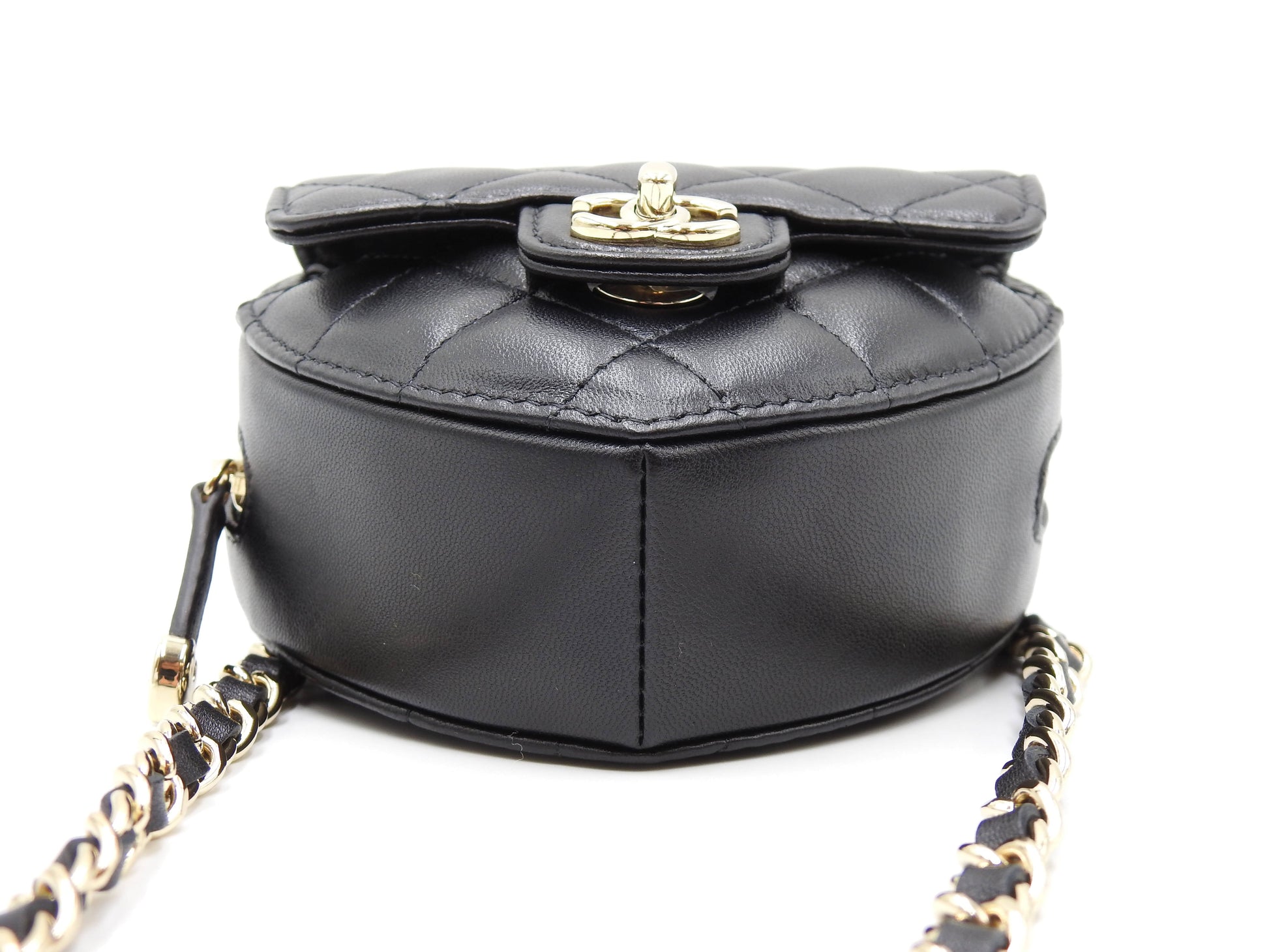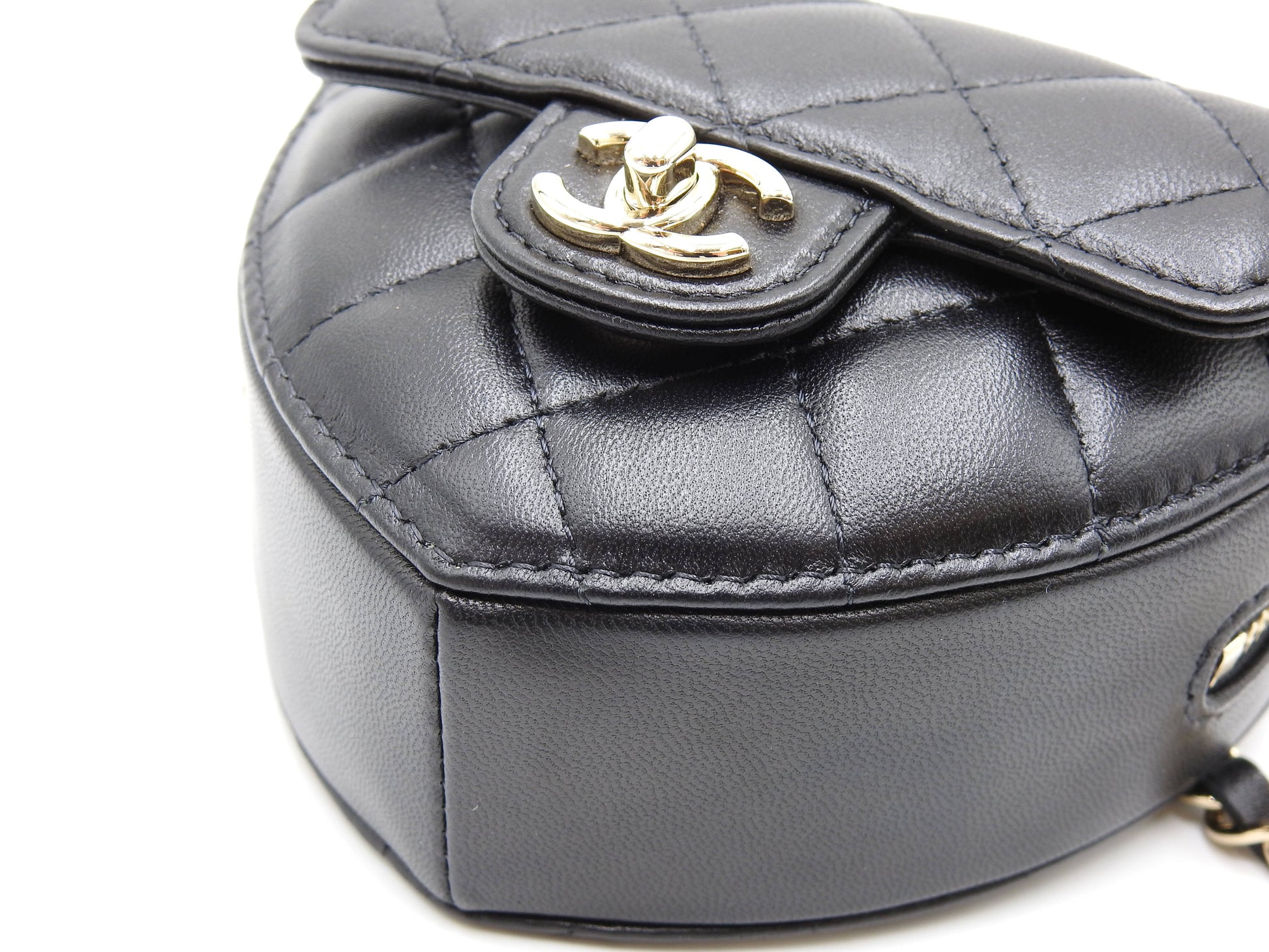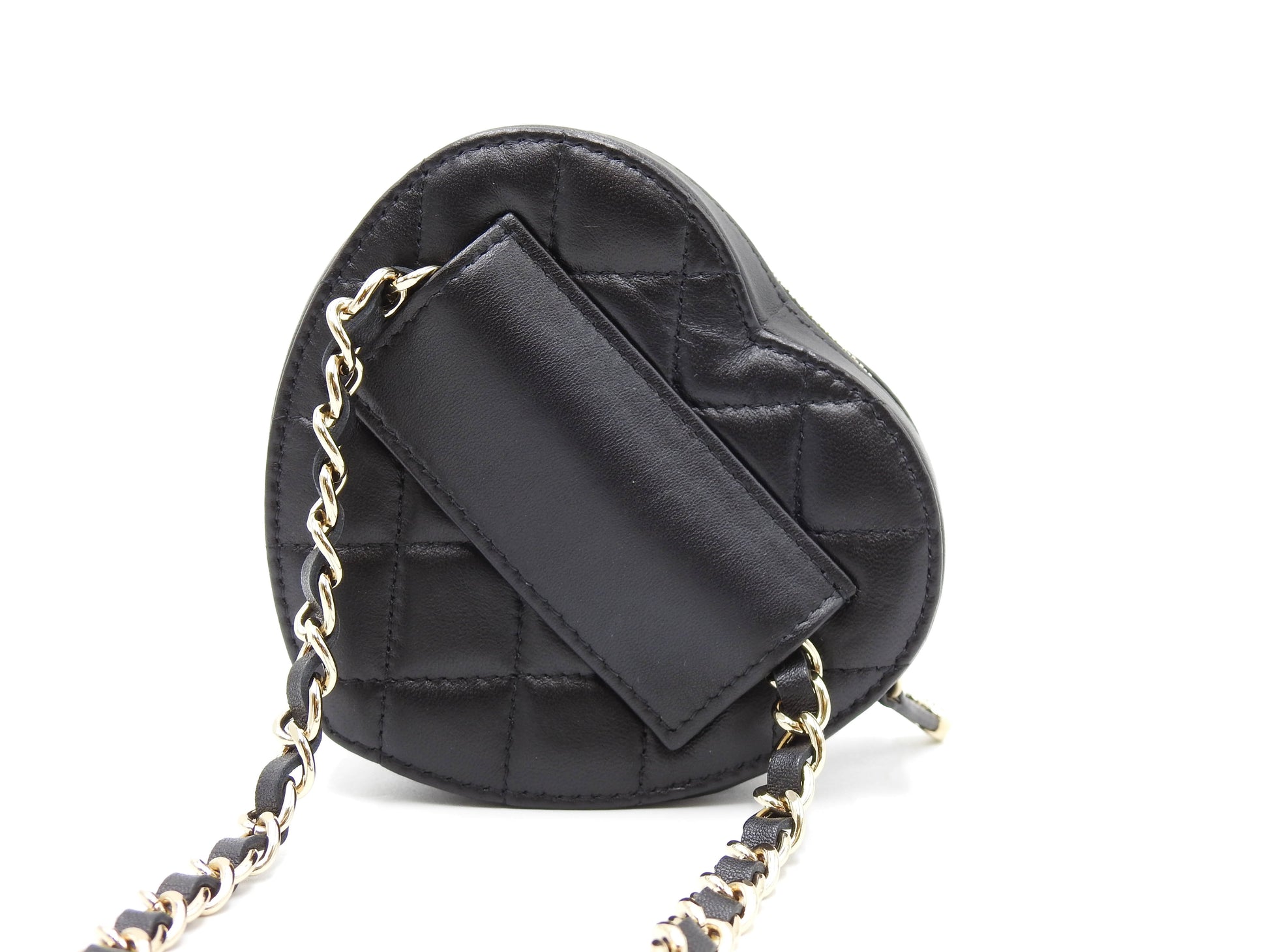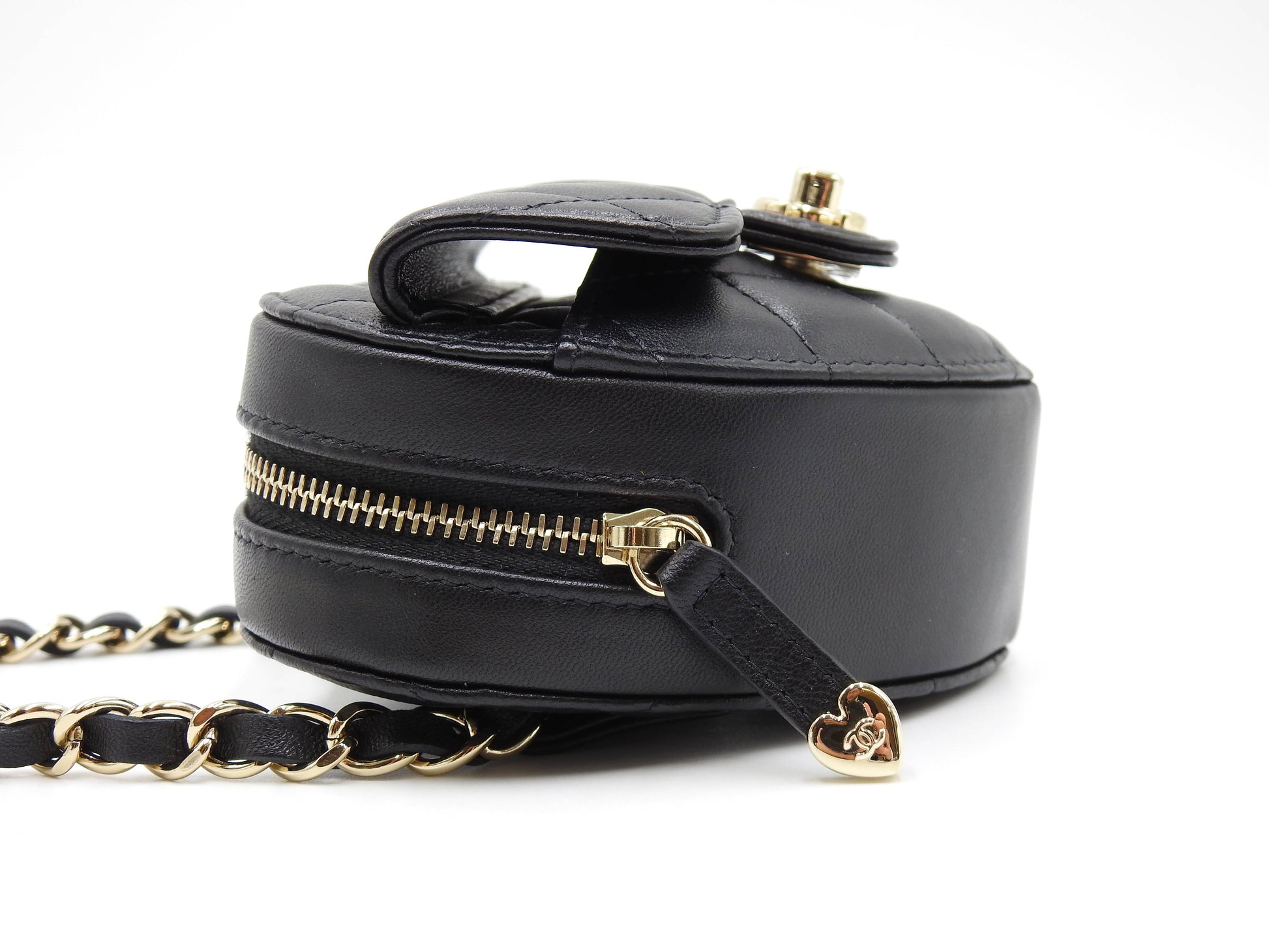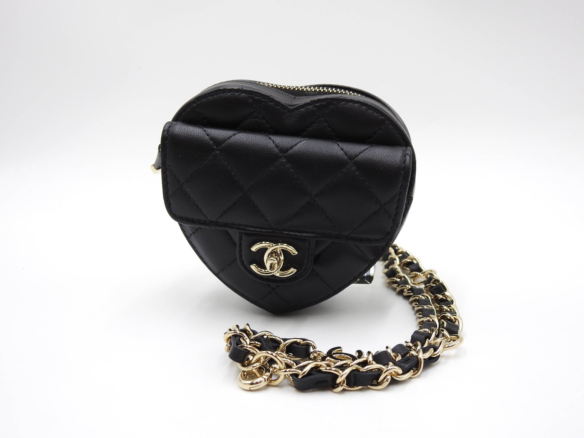 CHANEL CC in Love Heart Chain Waist Belt Bag Lambskin Black AP2787