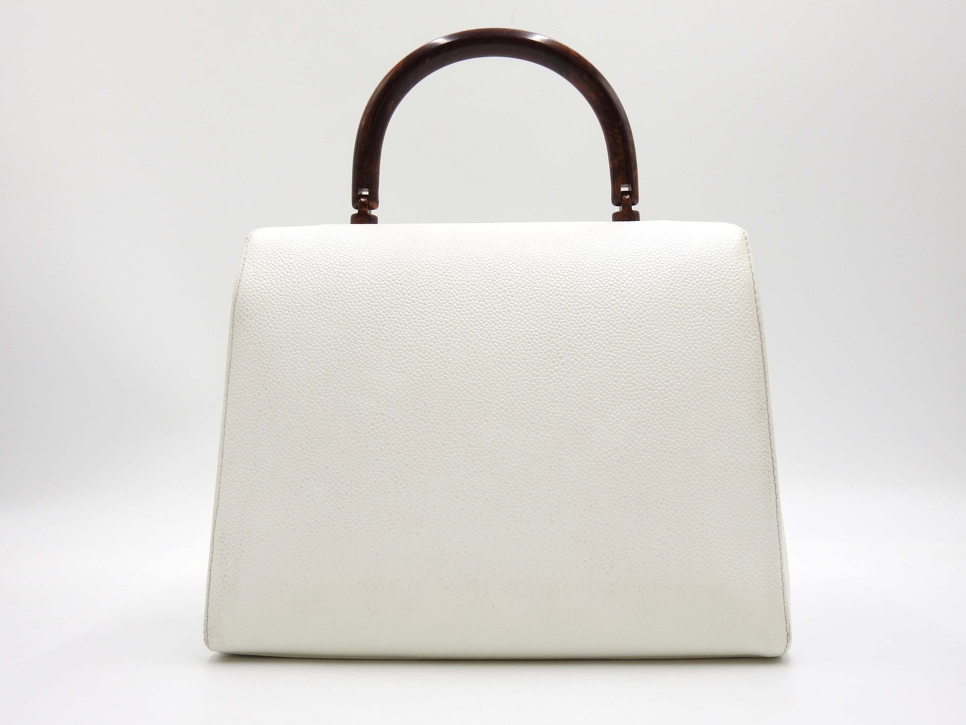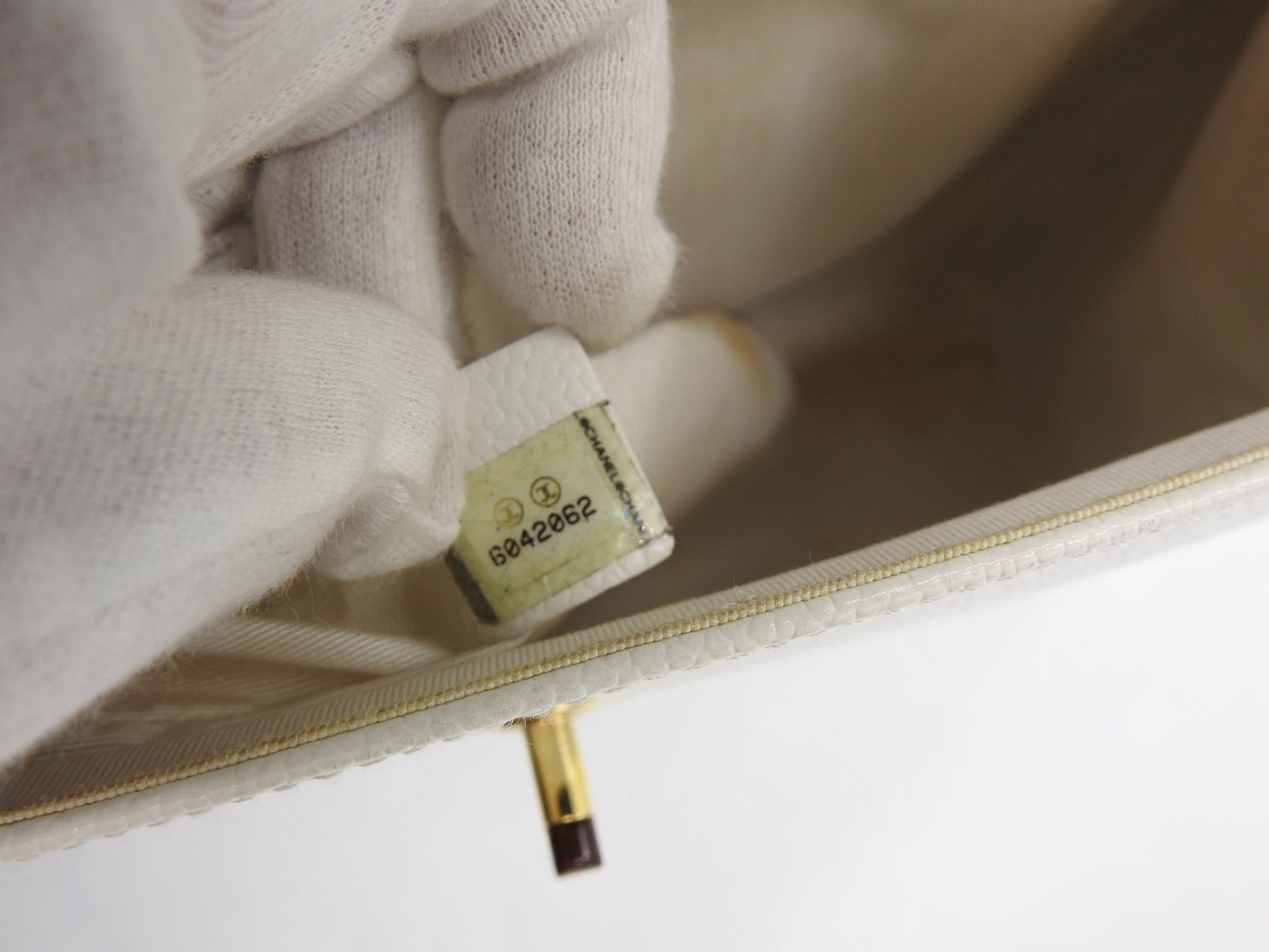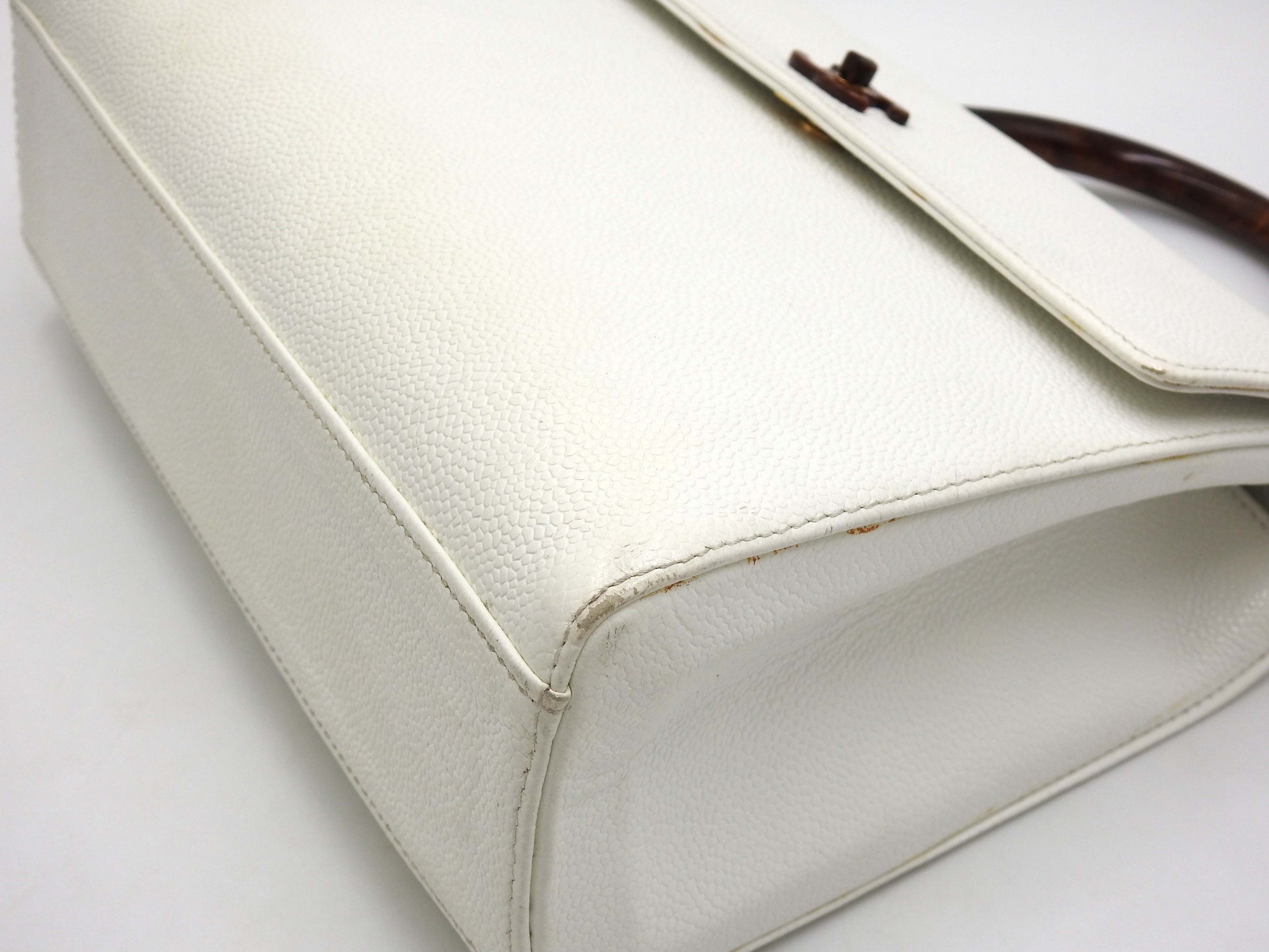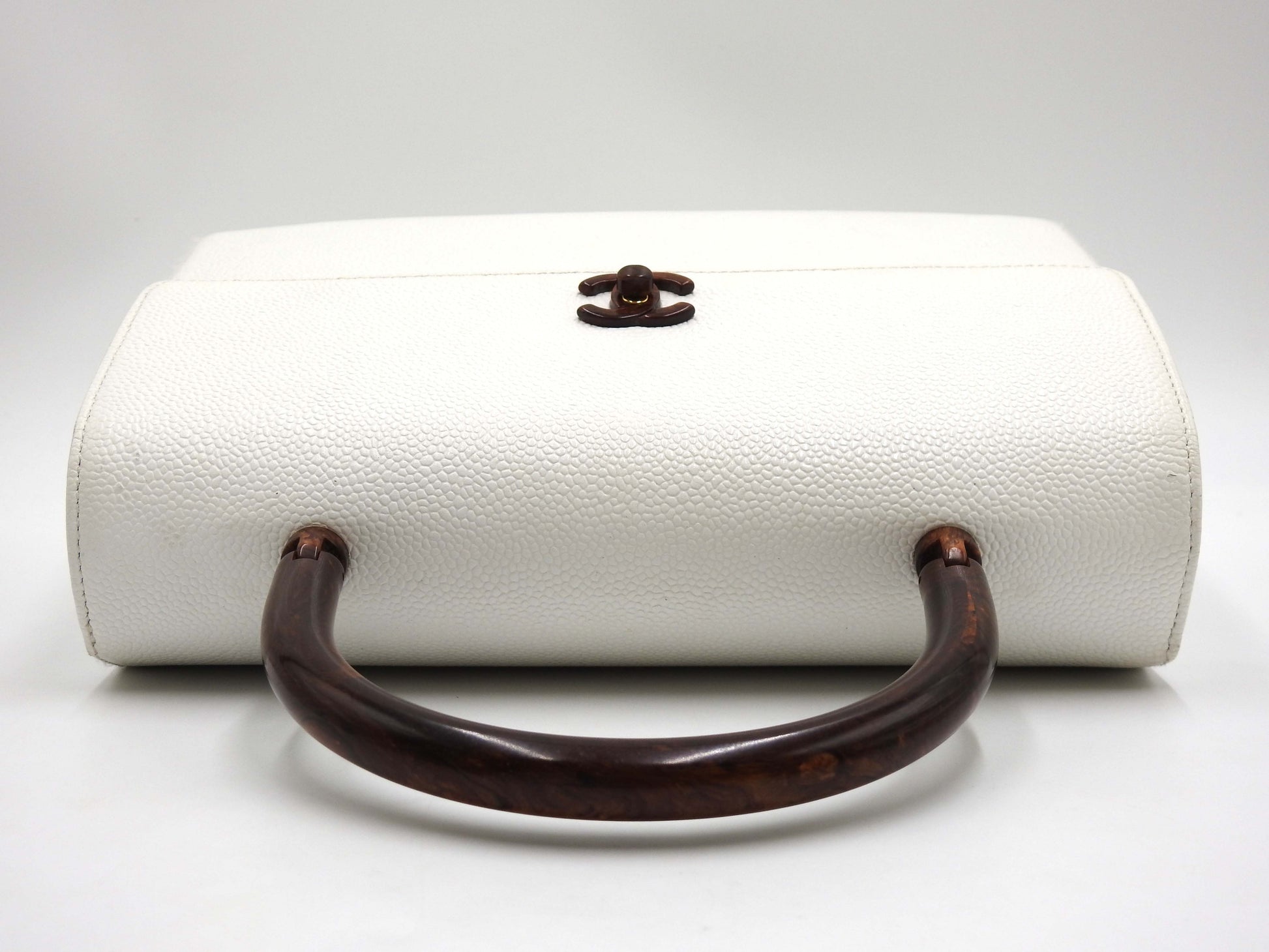 CHANEL CC Kelly Flap Wood Hand Bag Caviarskin Leather White