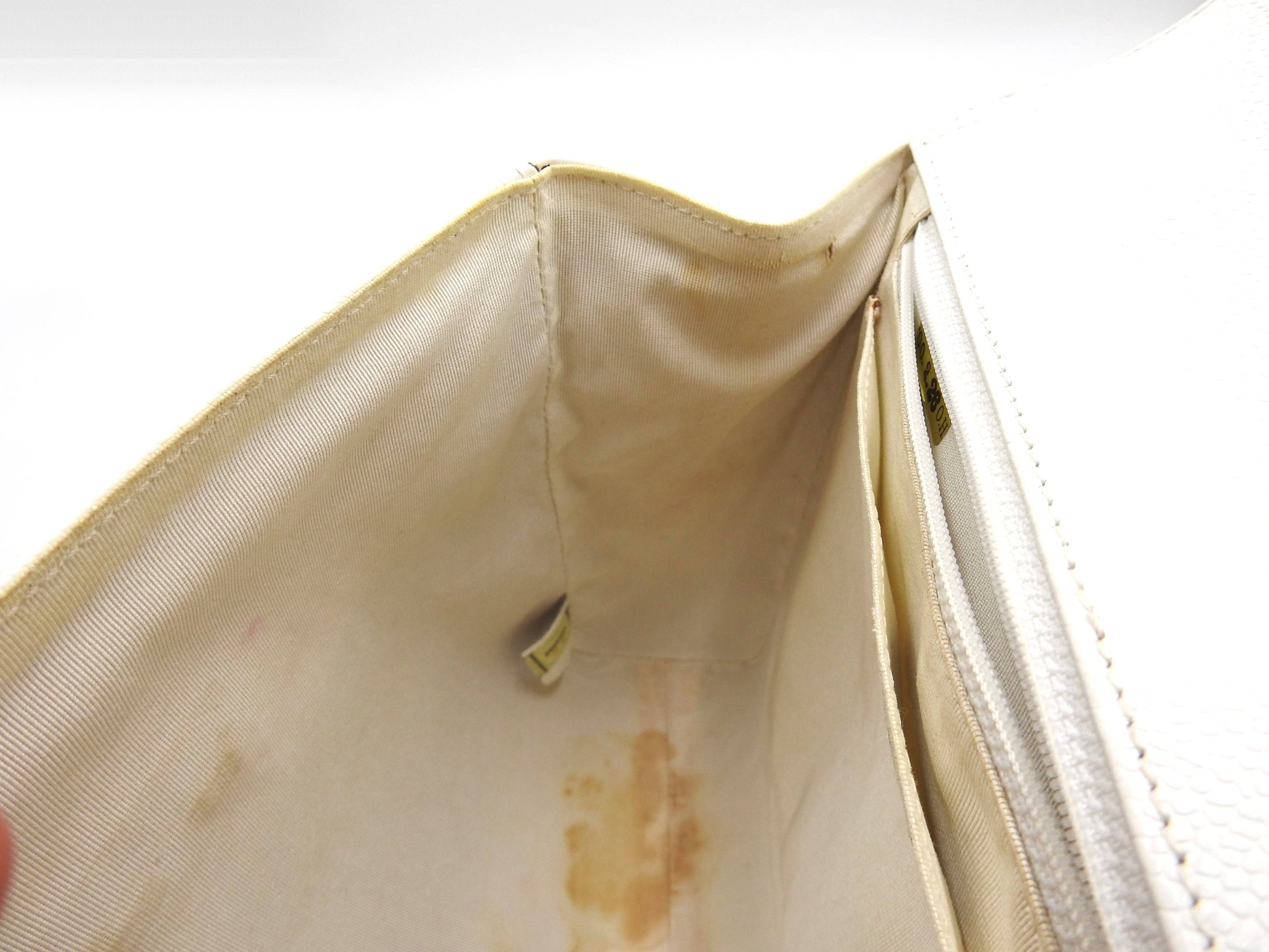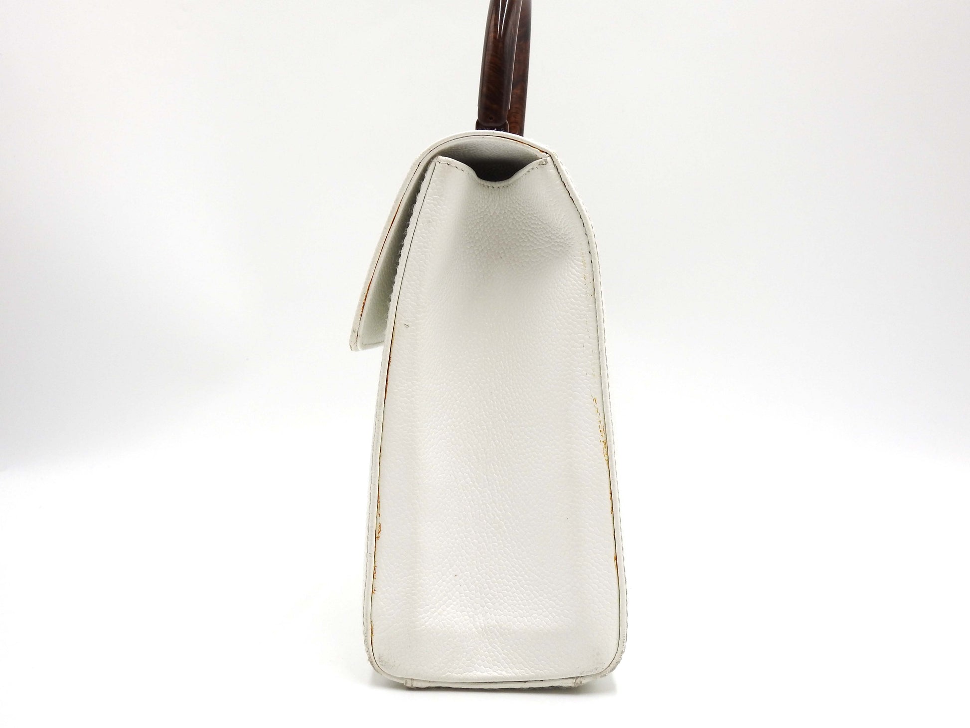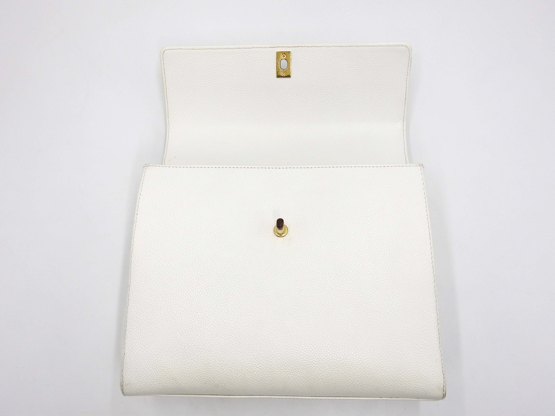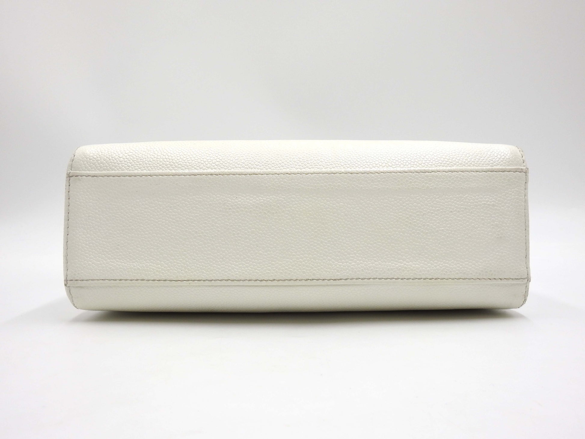 CHANEL CC Kelly Flap Wood Hand Bag Caviarskin Leather White