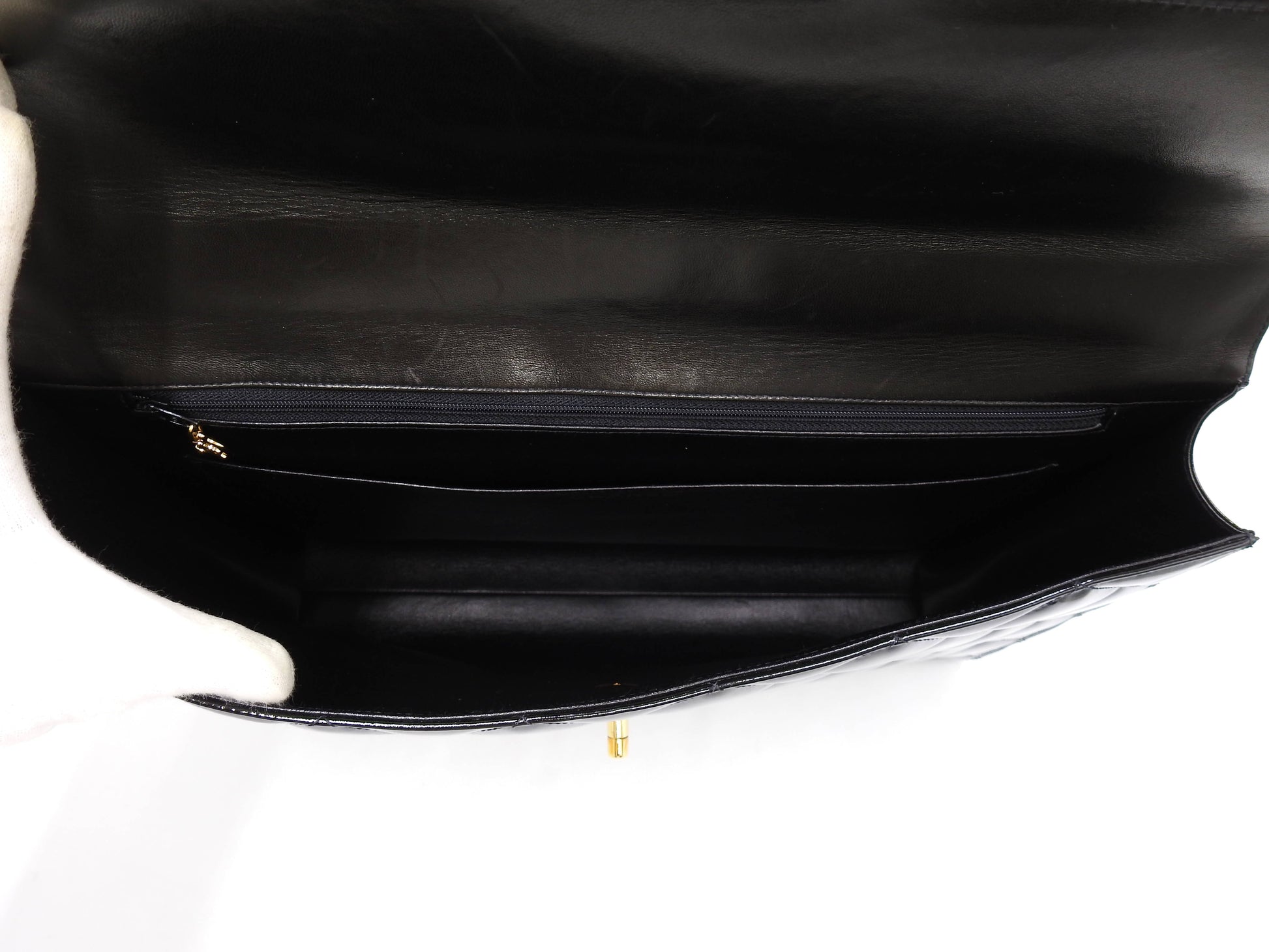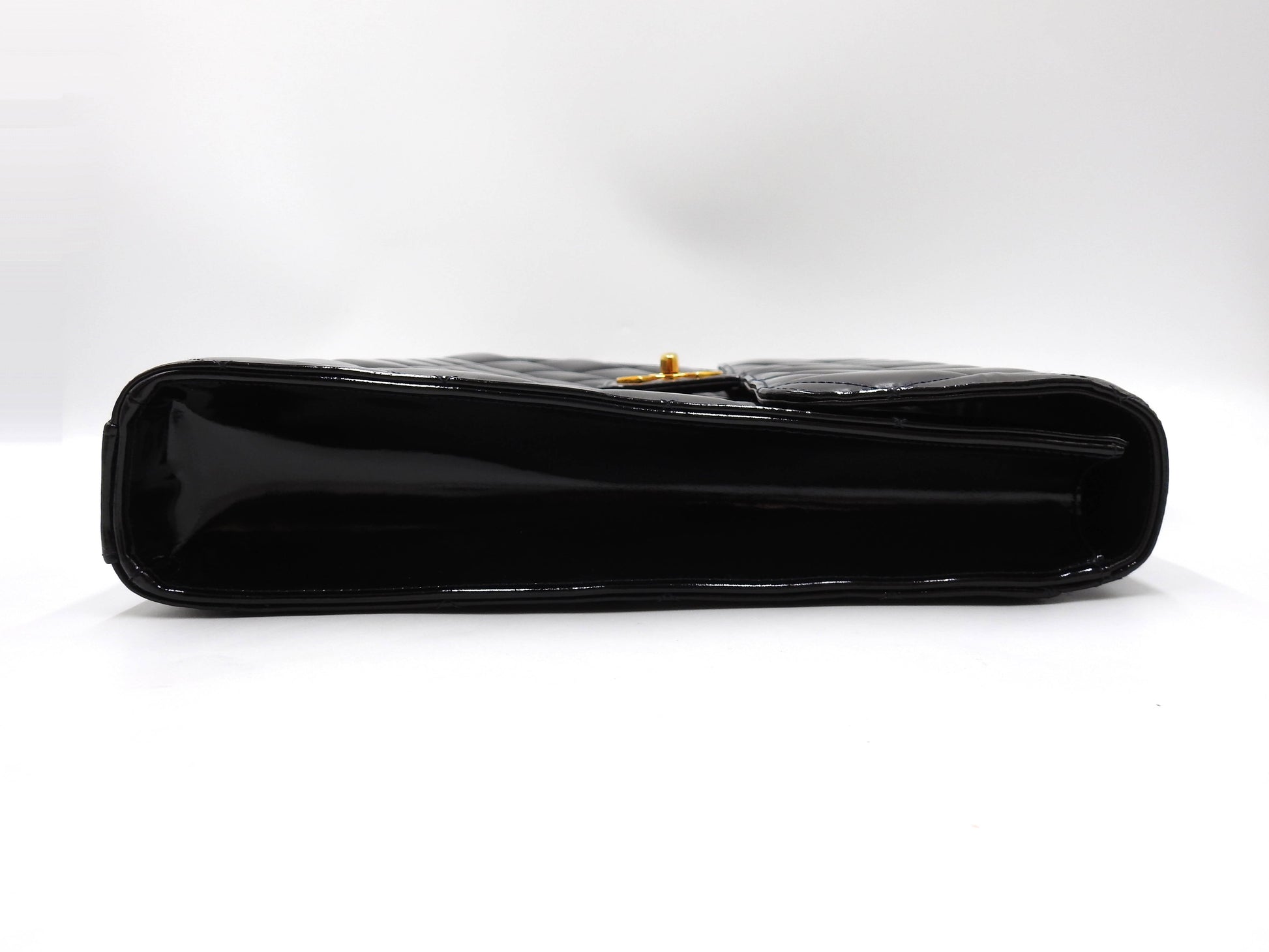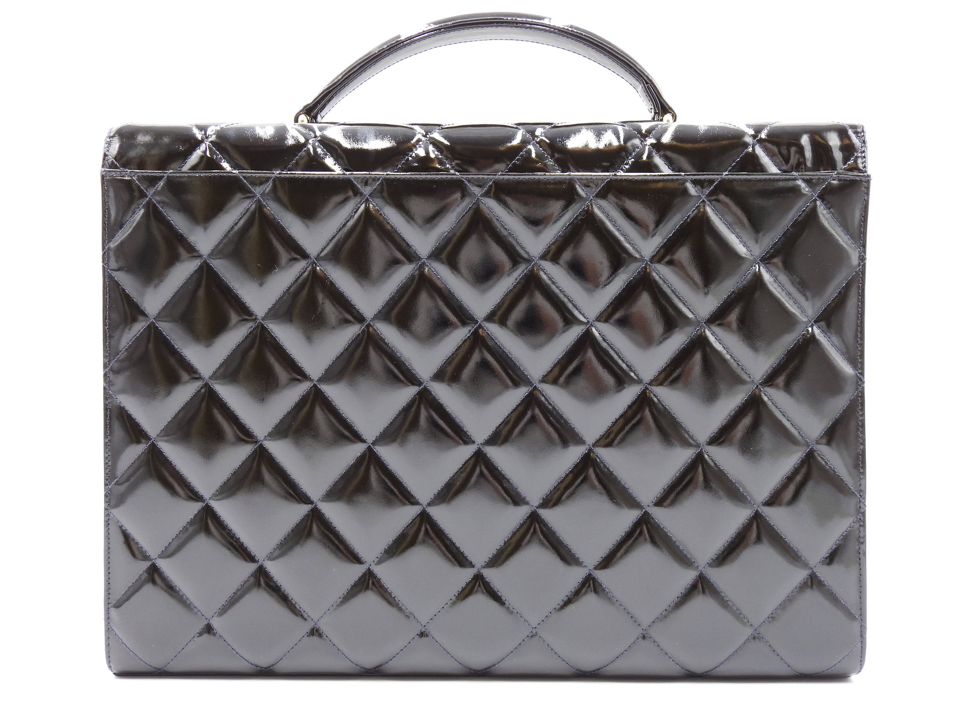 CHANEL CC Matelasse Briefcase Business Bag Enamel Patent Leather Black