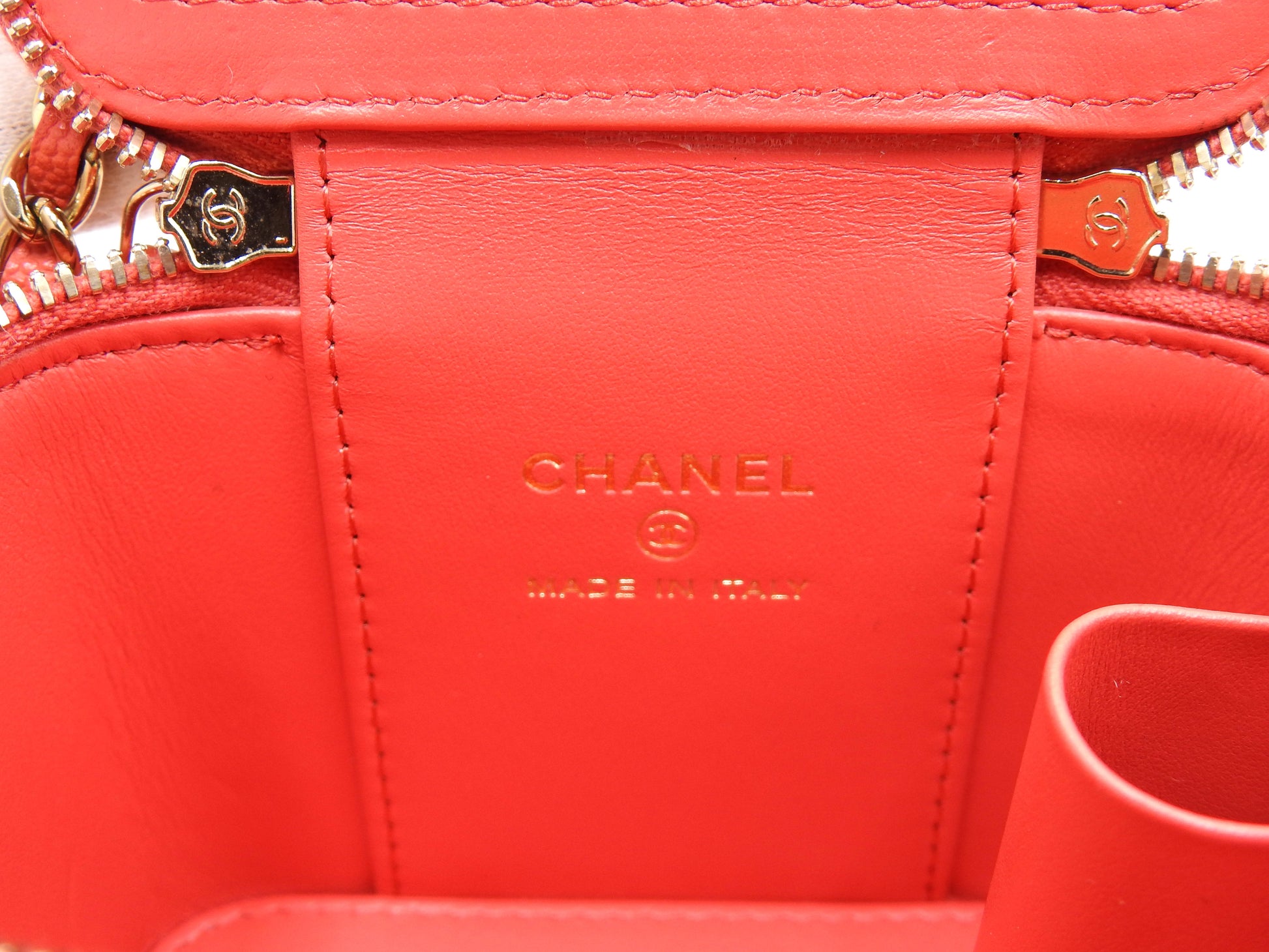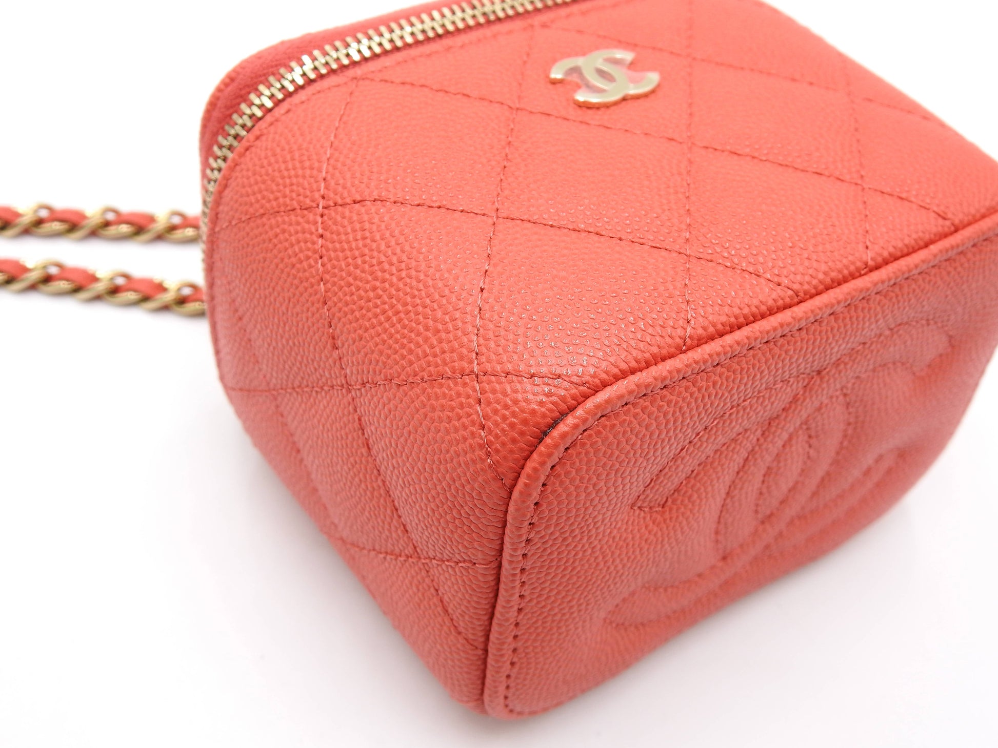 CHANEL CC Matelasse Chain Small Vanity Shoulder Bag Caviarskin Red AP1340