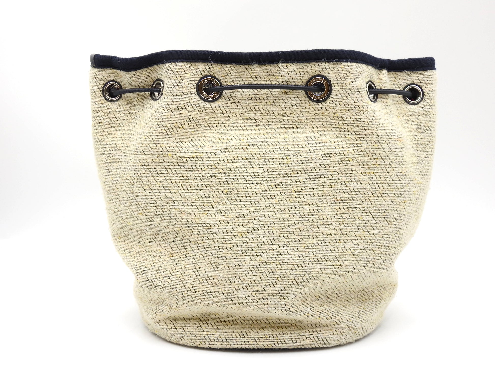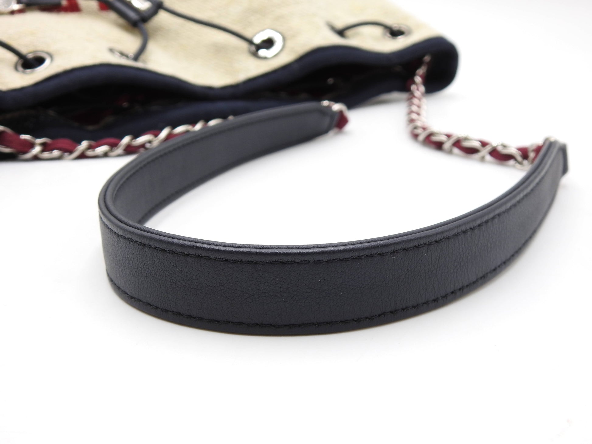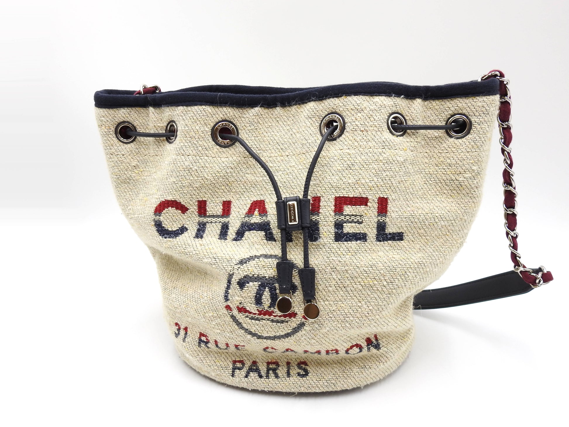 CHANEL Deauville Drawstring Chain Shoulder Bag Canvas Beige