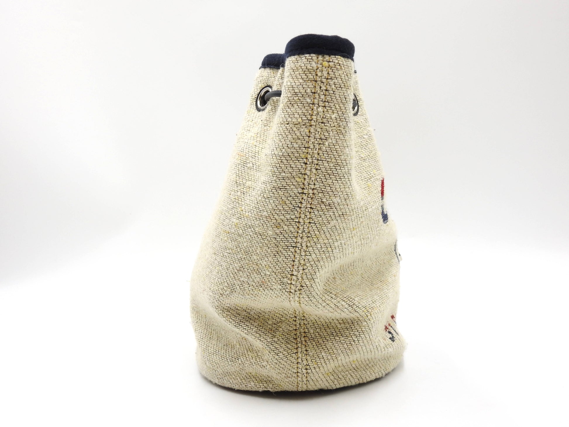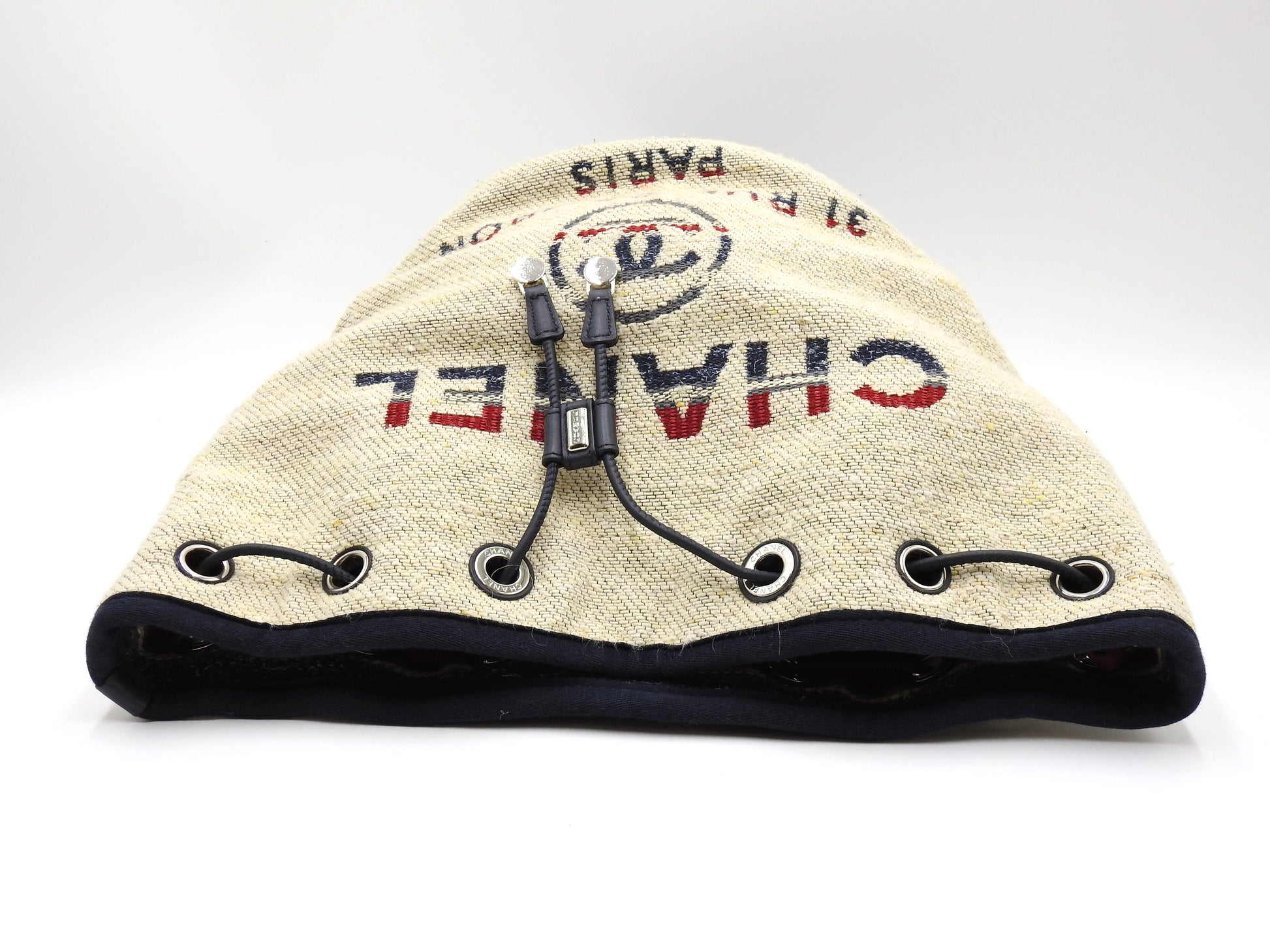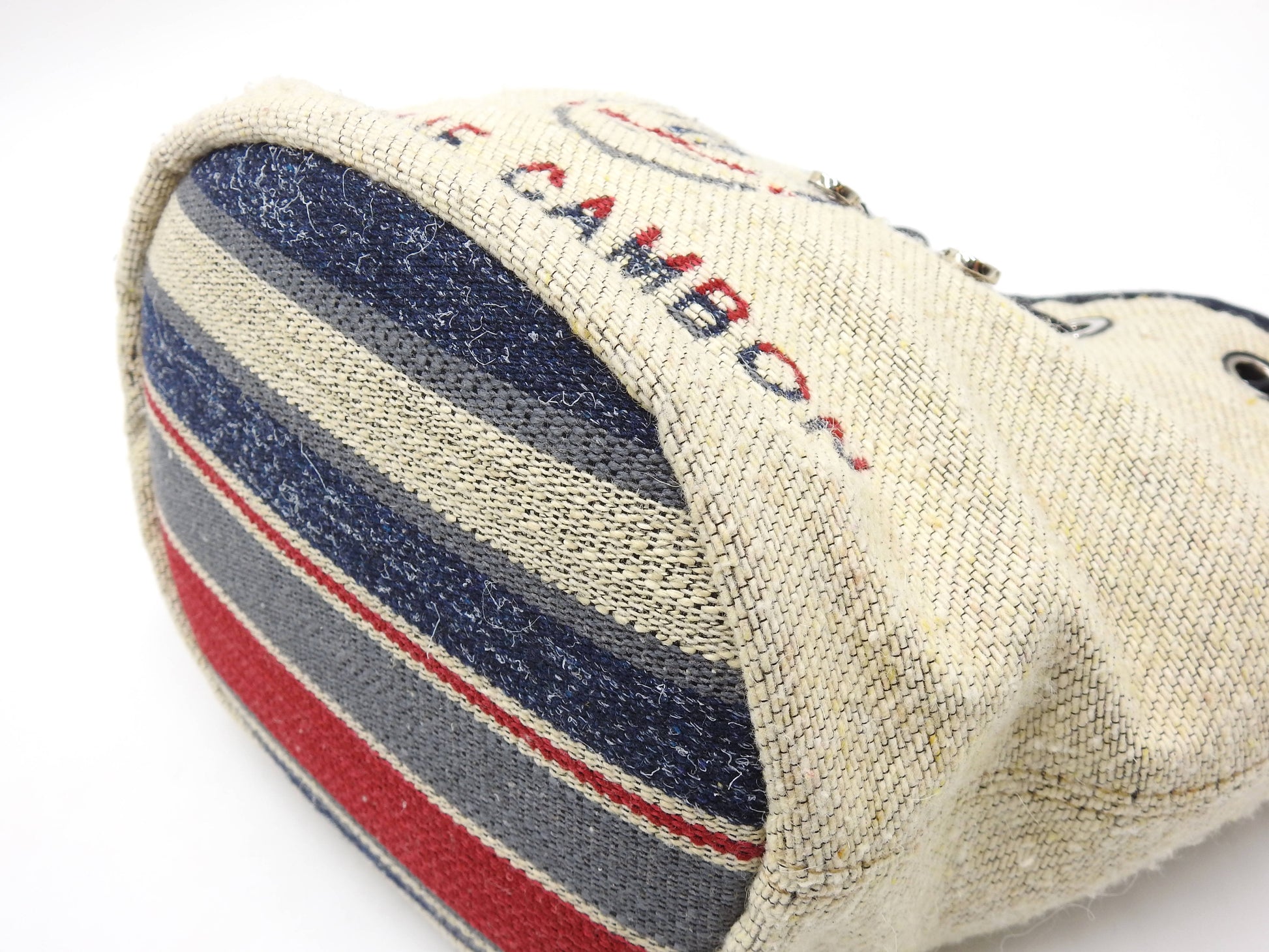 CHANEL Deauville Drawstring Chain Shoulder Bag Canvas Beige