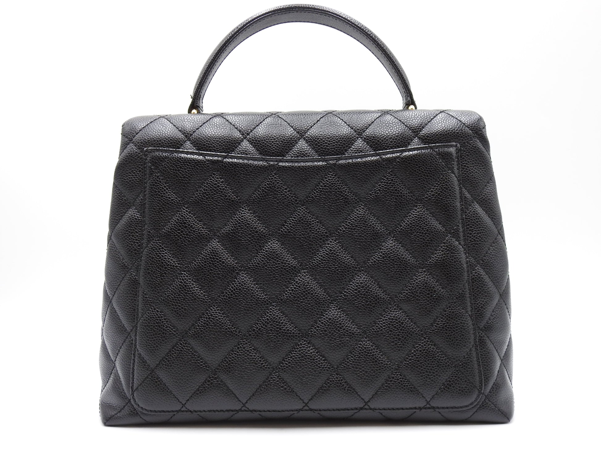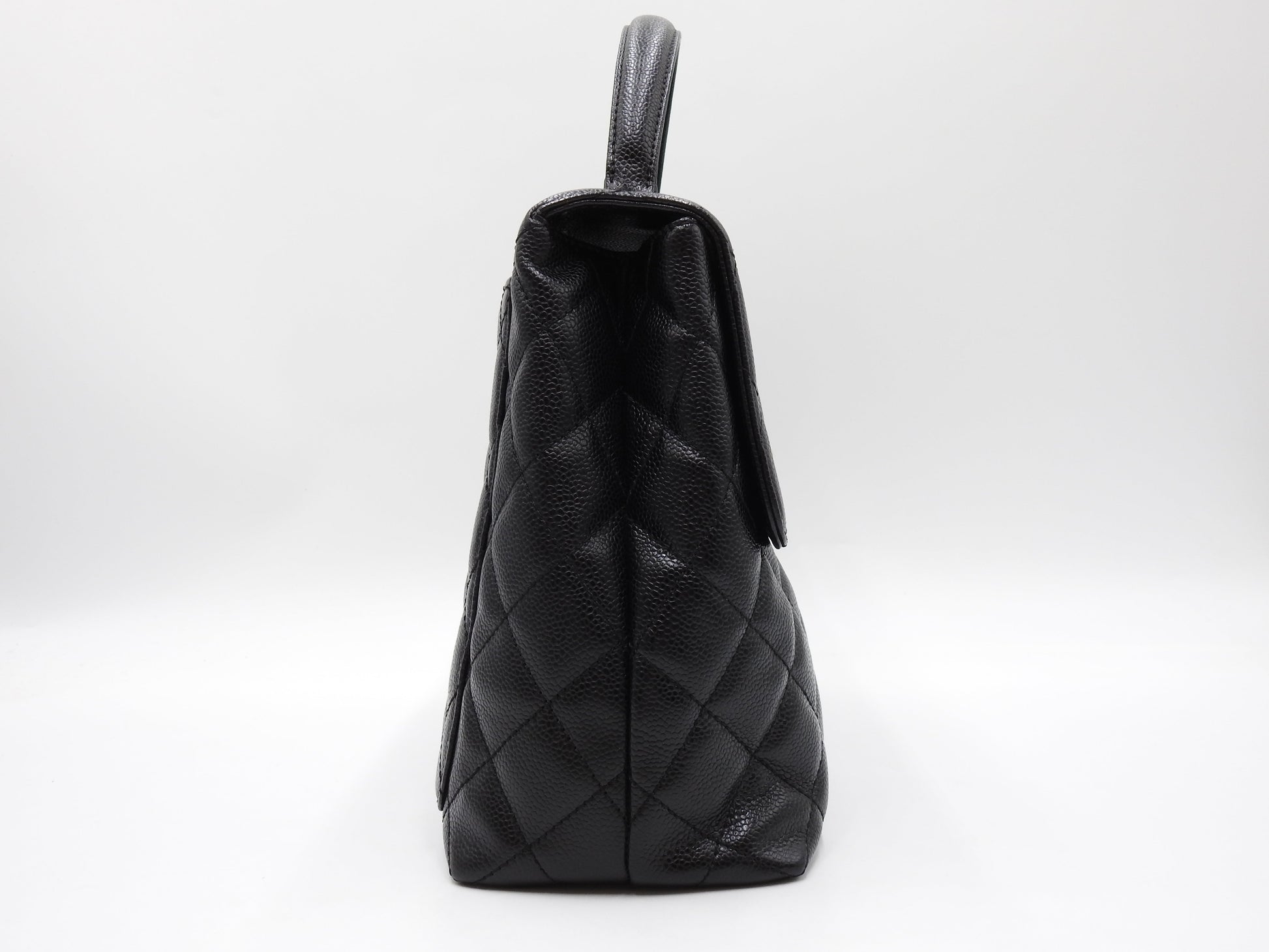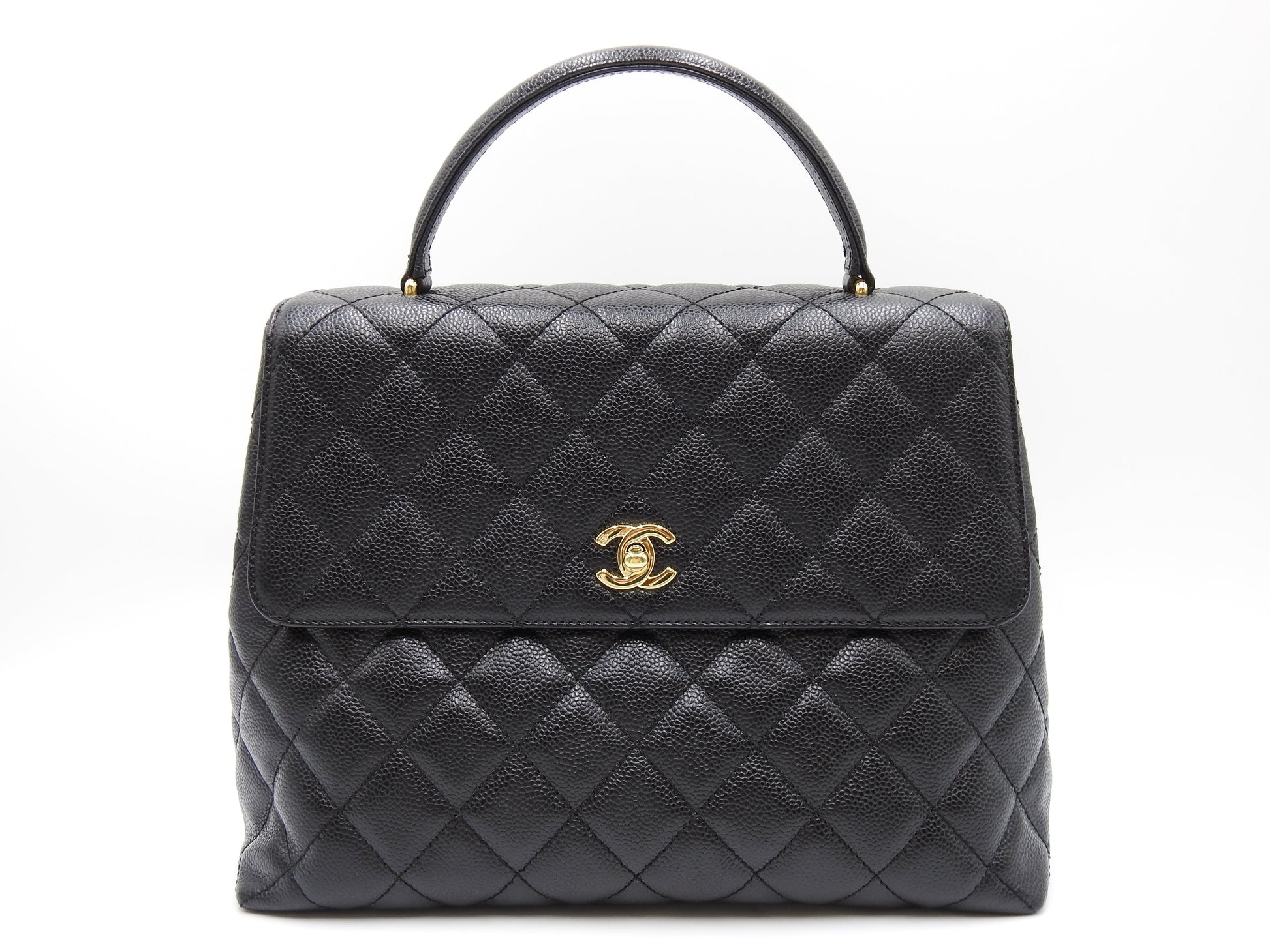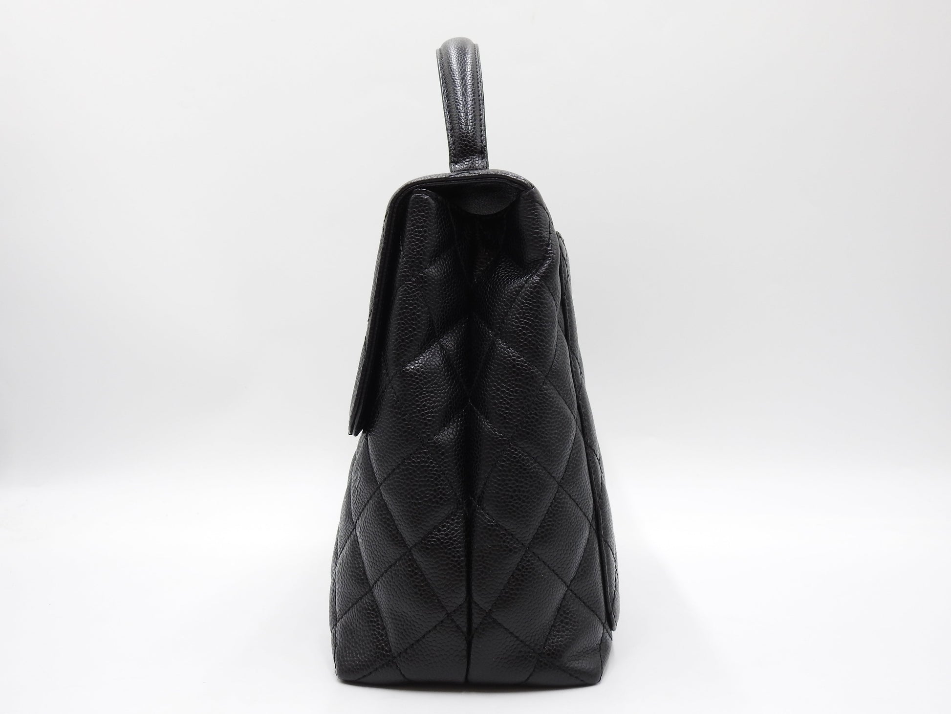CHANEL Matelasse CC Kelly Hand Bag Caviarskin Leather Black Gold A12397
