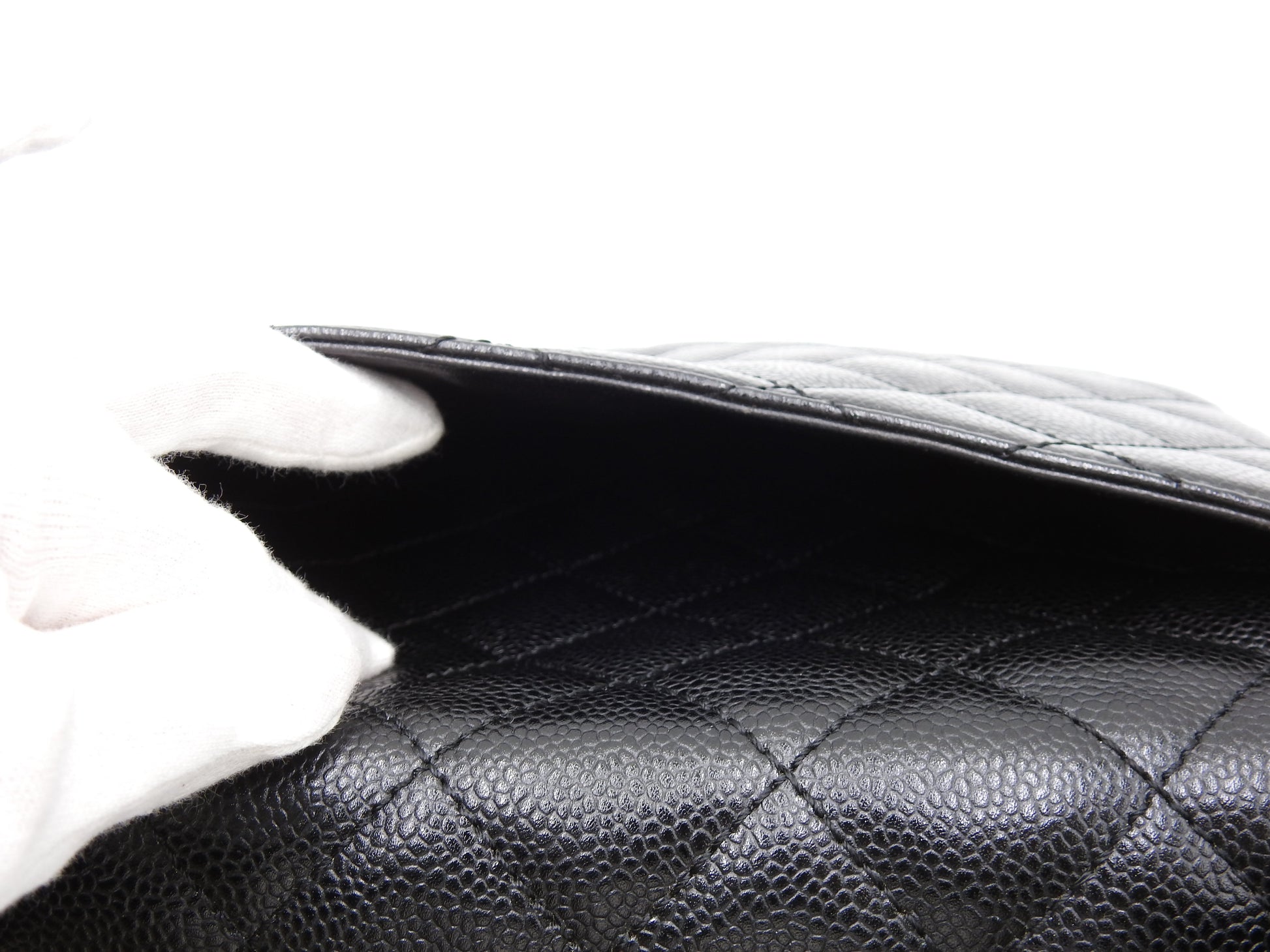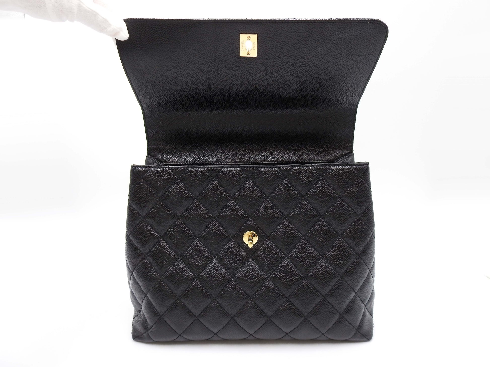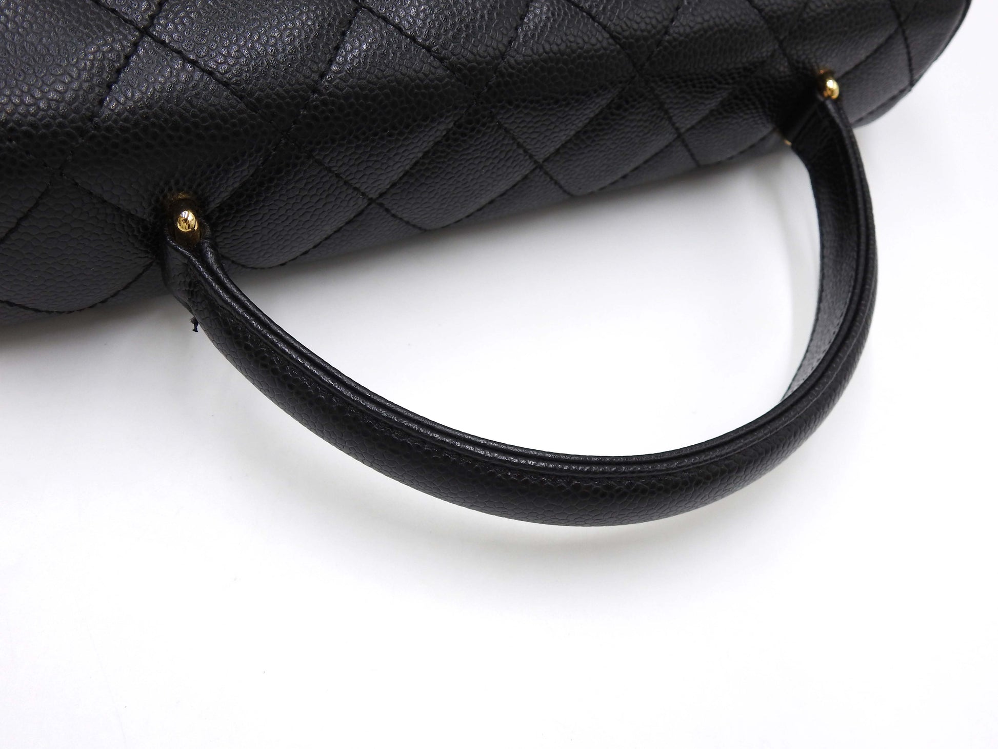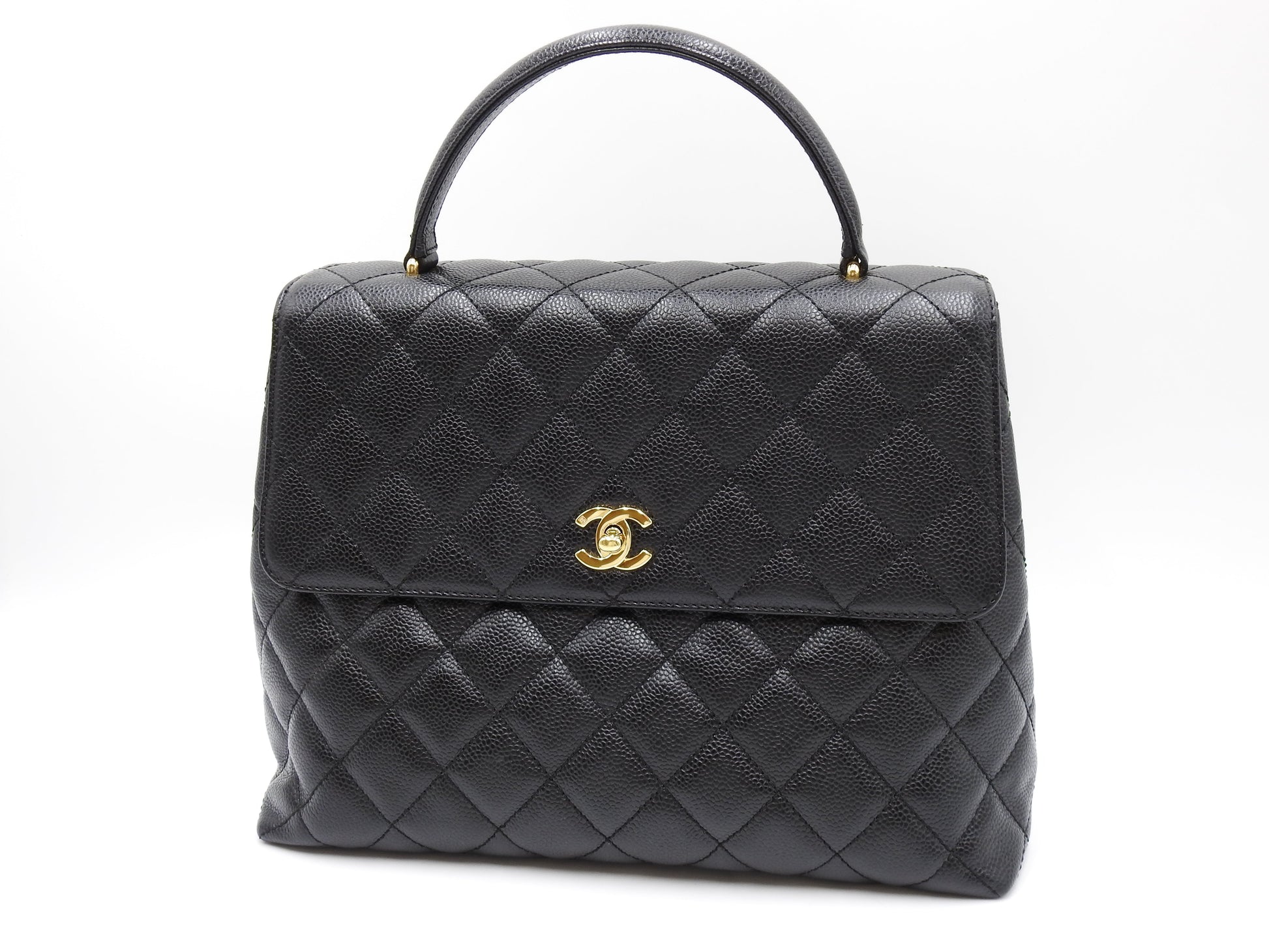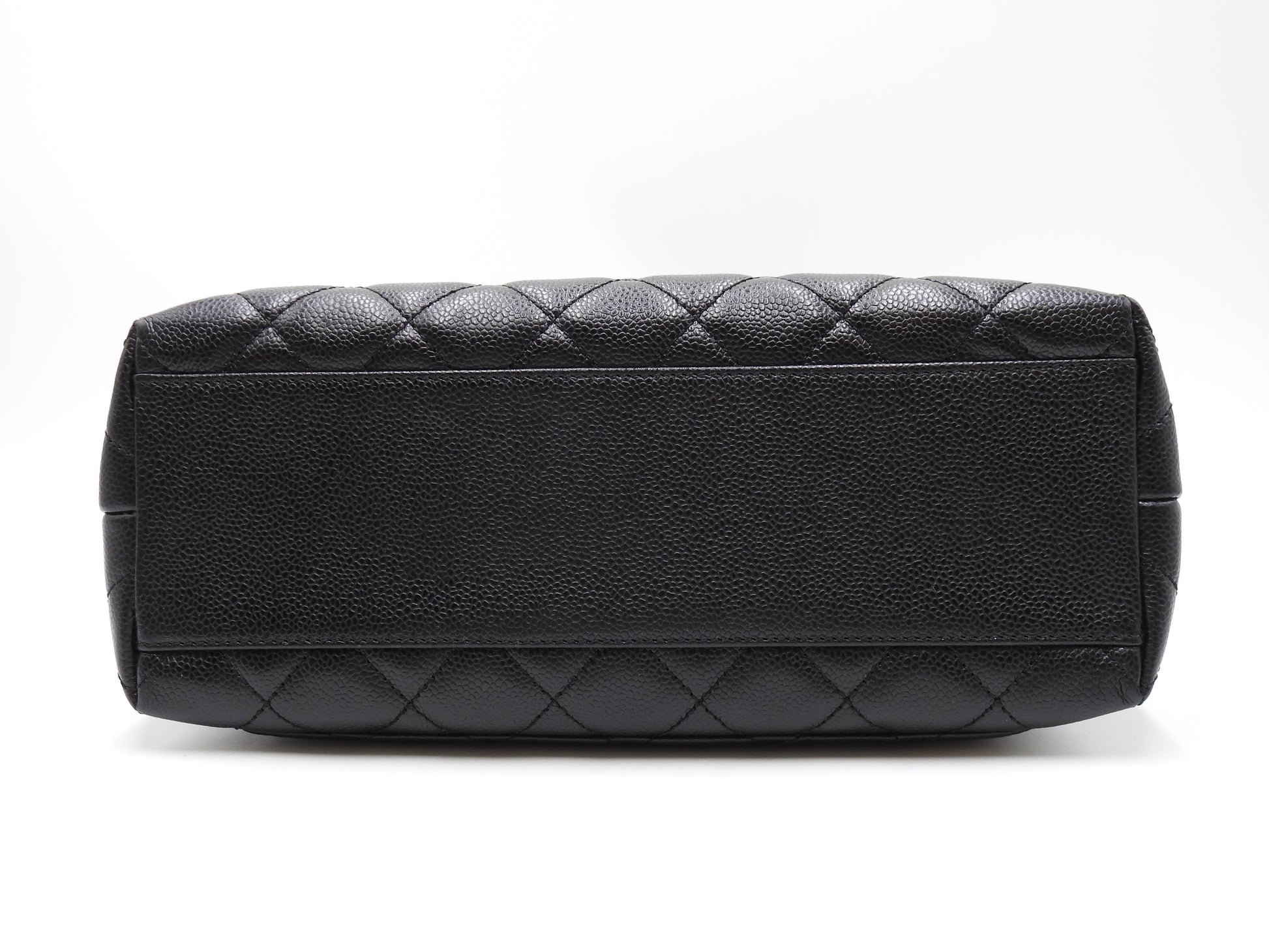 CHANEL Matelasse CC Kelly Hand Bag Caviarskin Leather Black Gold A12397
