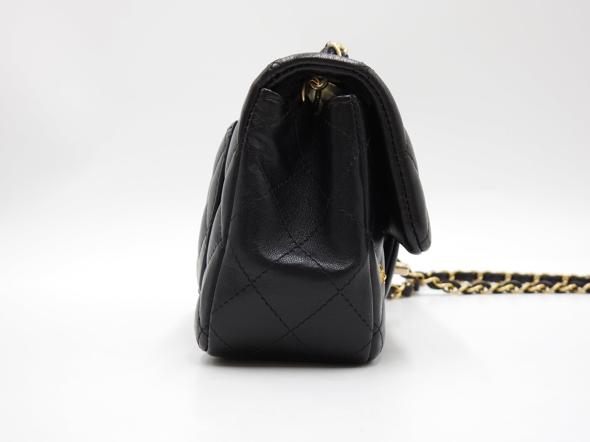 CHANEL Matelasse Mini Rectangular Flap Chain Shoulder Bag Lambskin Black