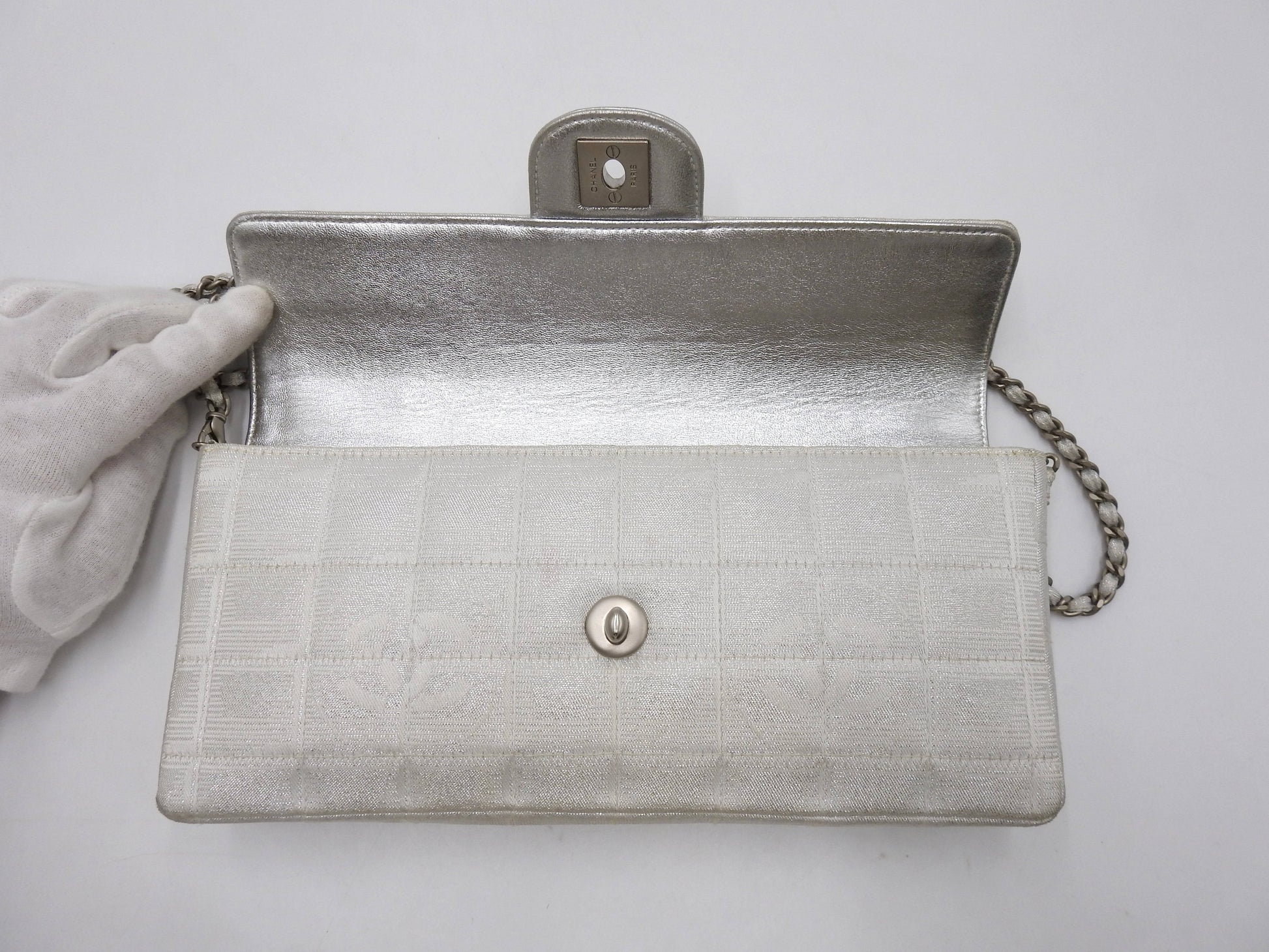CHANEL New Travel Line Chocolate Bar Chain Shoulder Bag Silver A15316