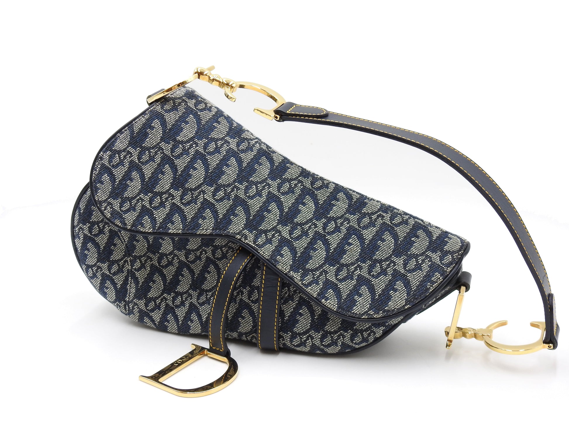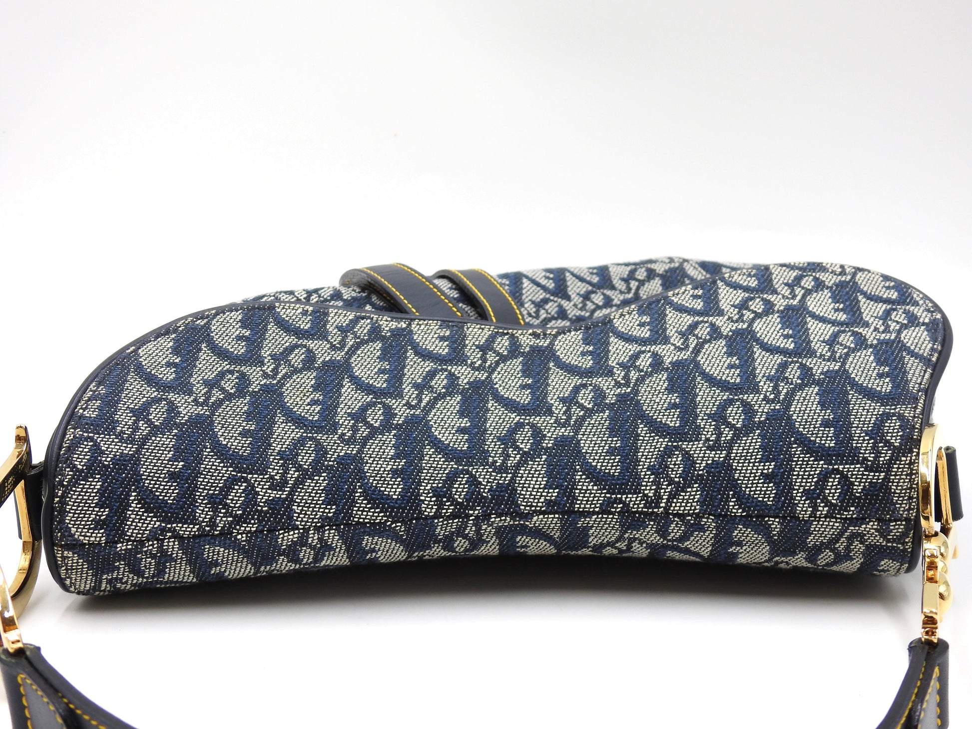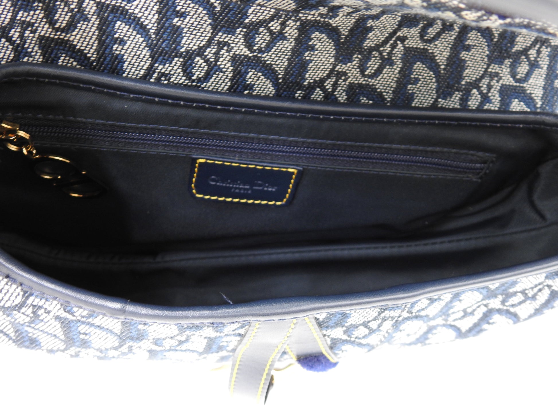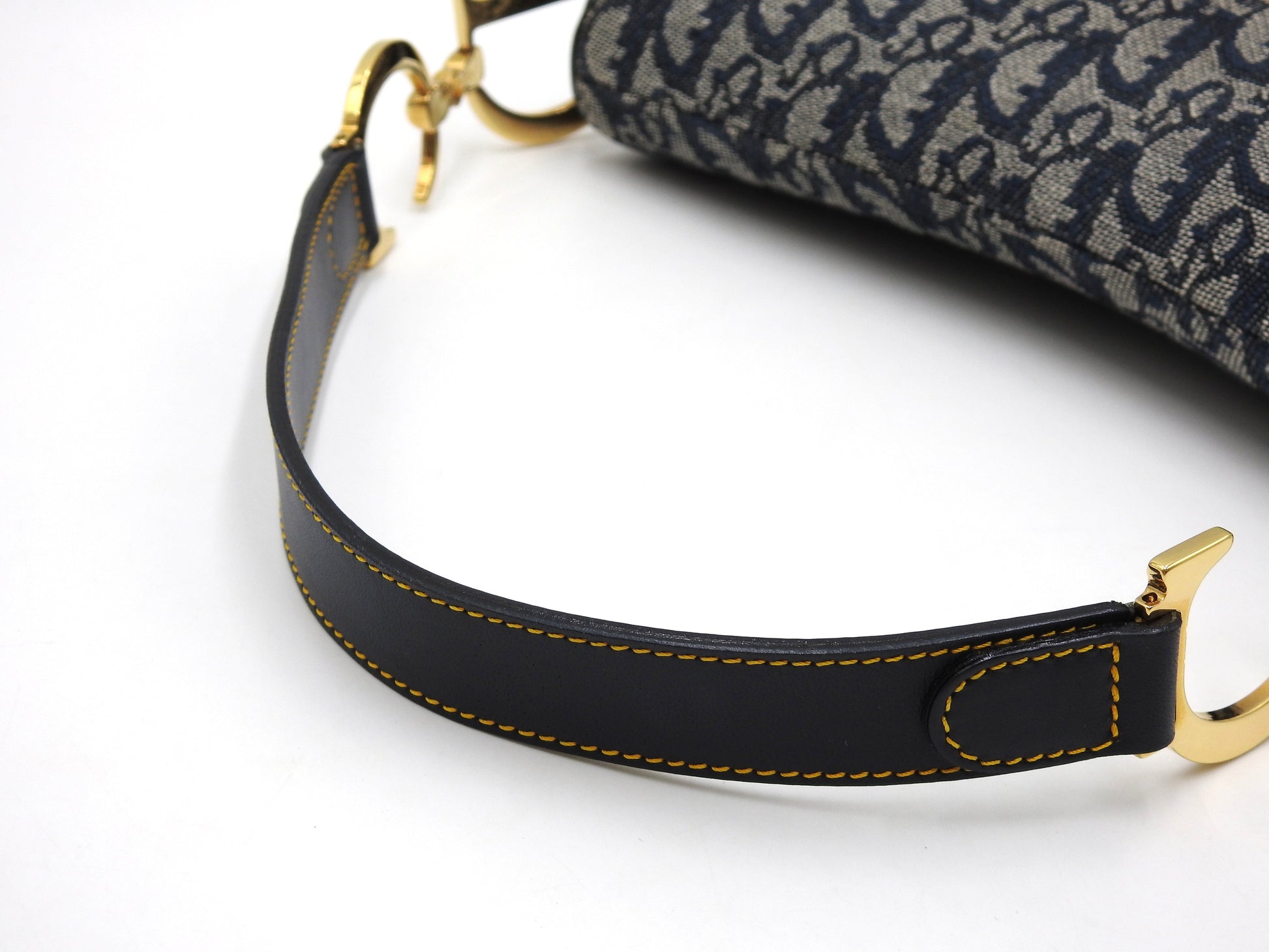 Christian Dior Trotter Oblique Saddle Bag Shoulder Hand Bag Canvas Navy