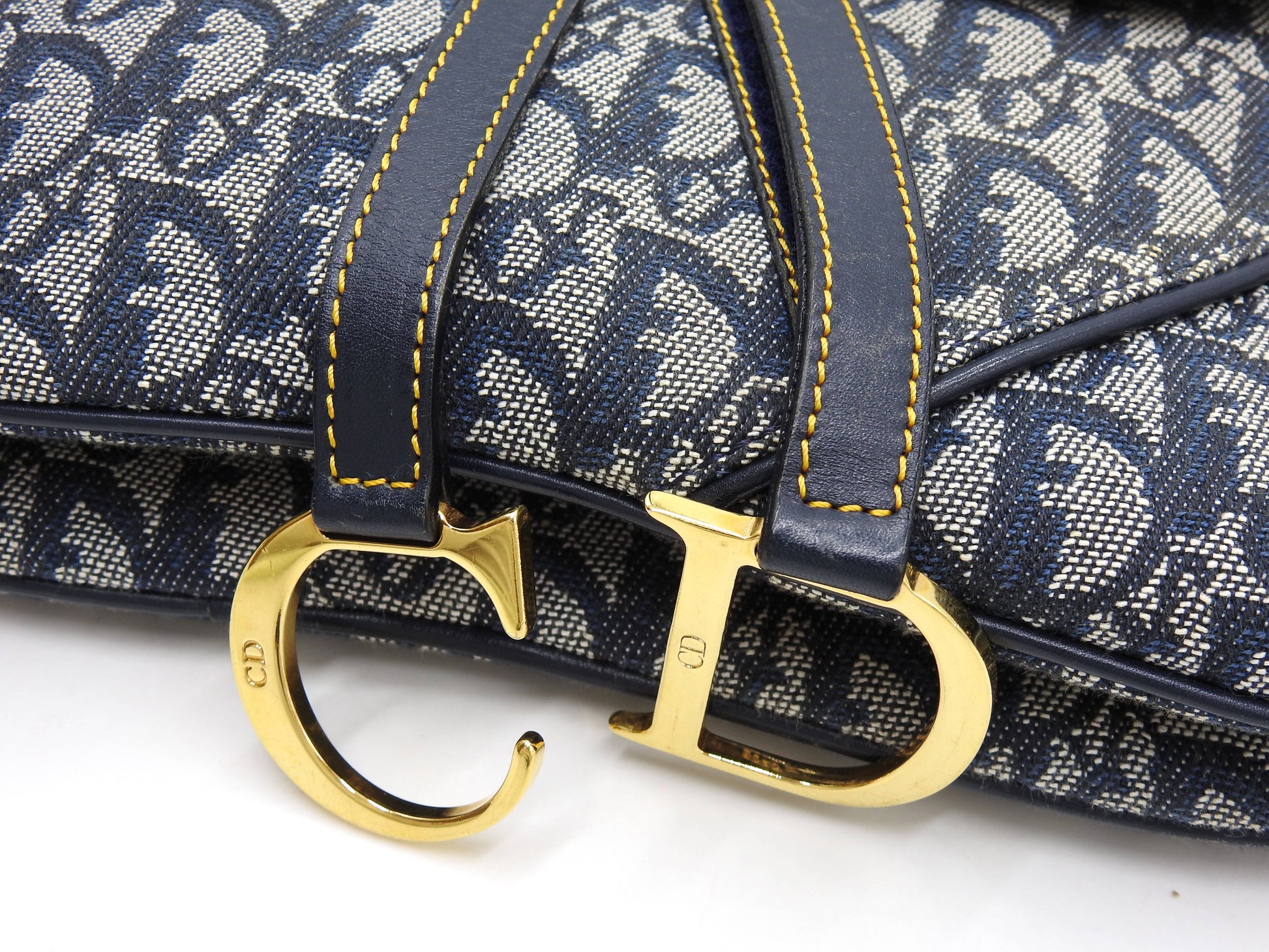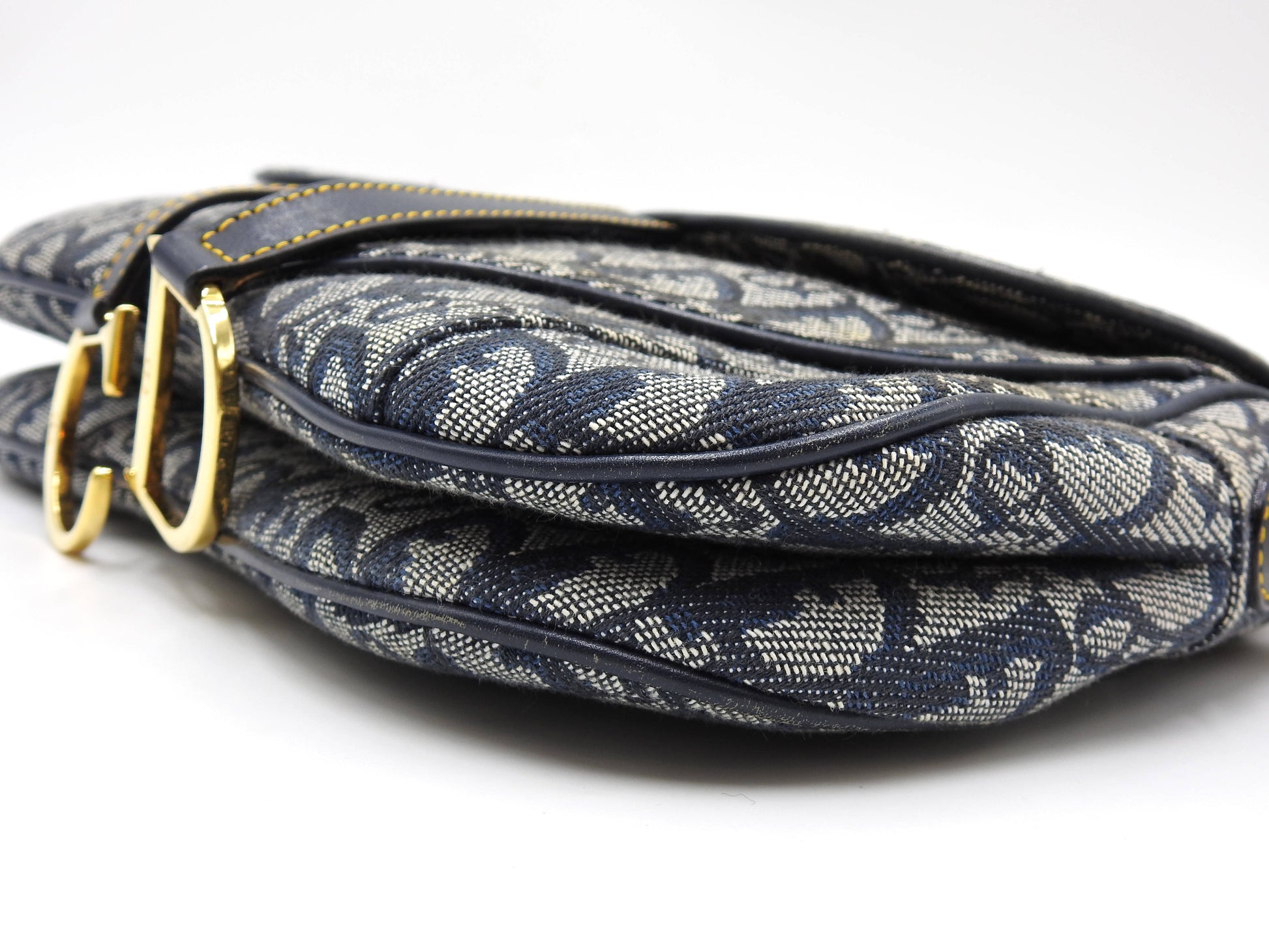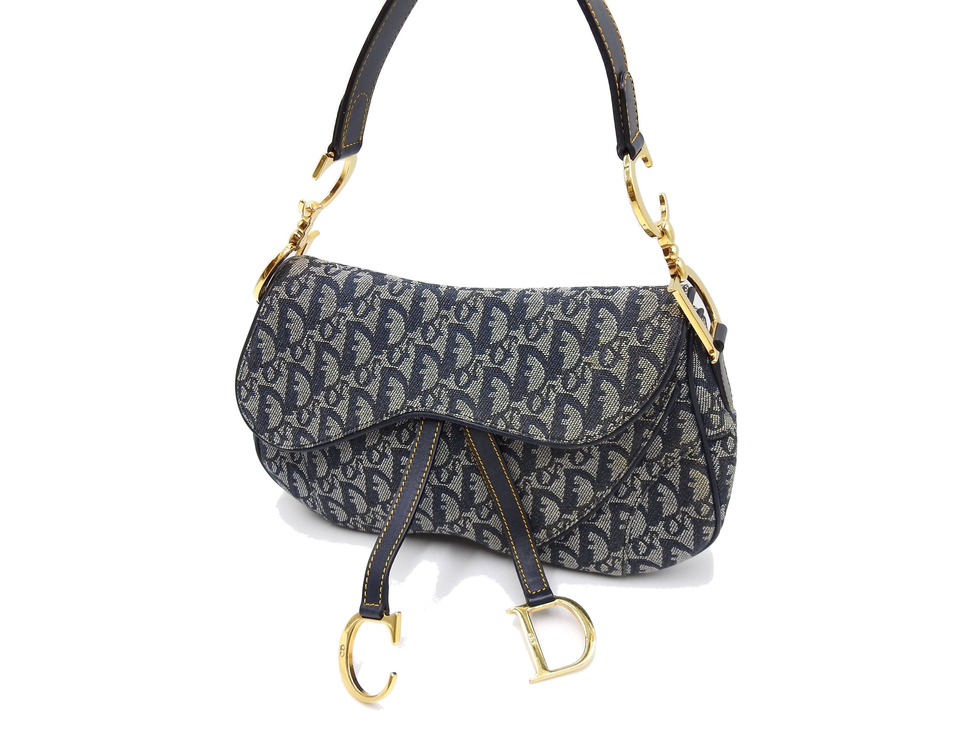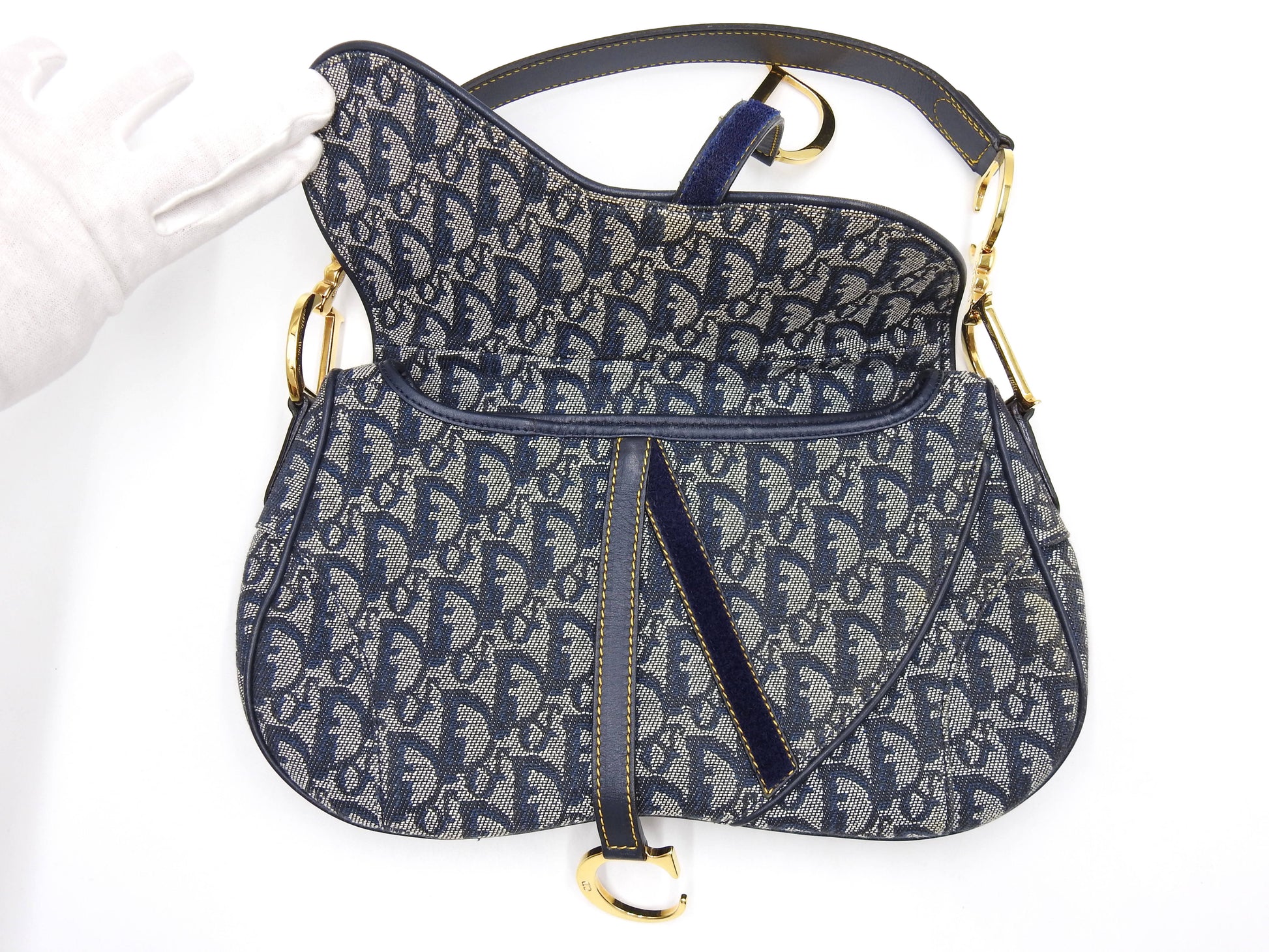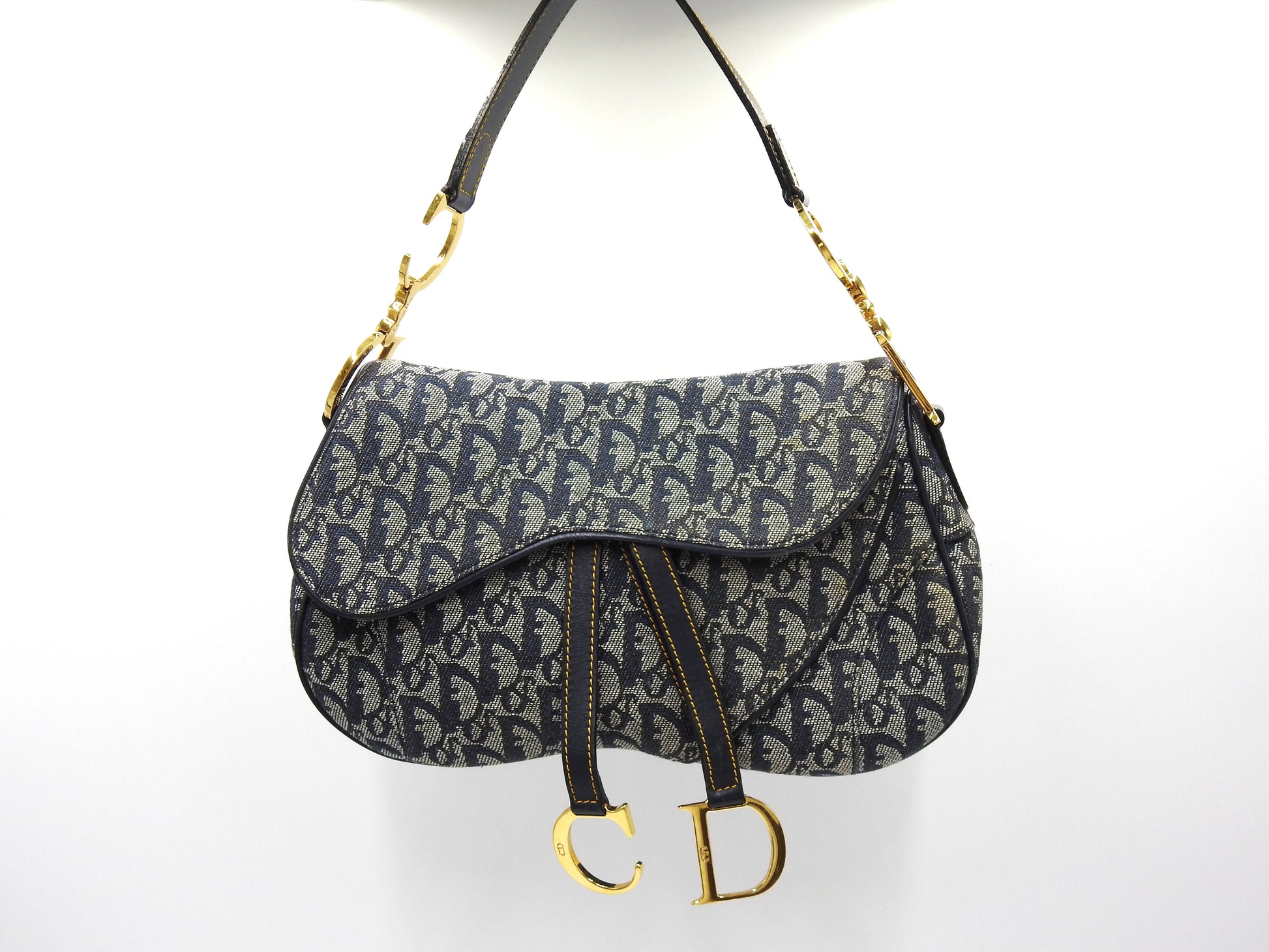 Christian Dior Trotter Oblique W Saddle Bag Shoulder Hand Bag Canvas Navy