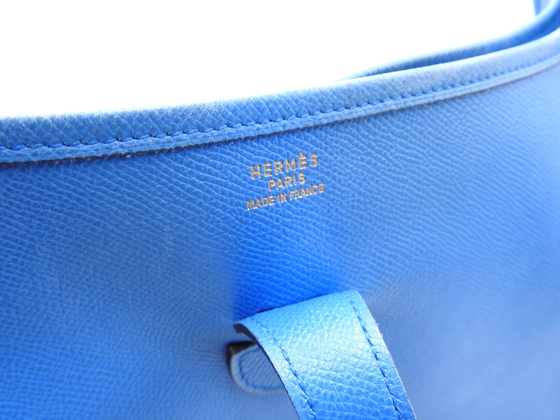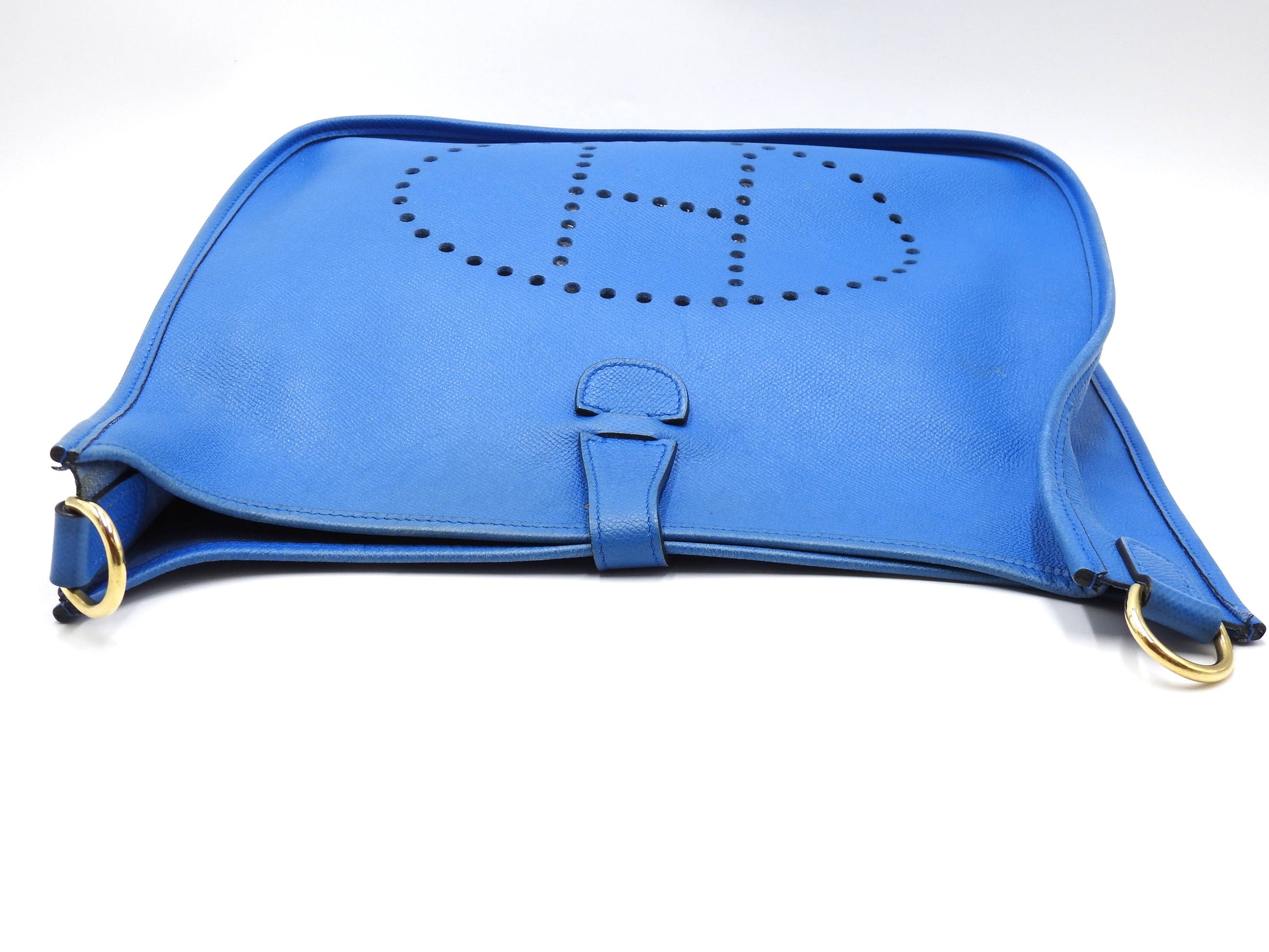 Hermes Evelyne 1 GM Shoulder Bag Cushbel Leather Blue Gold Hardware □A