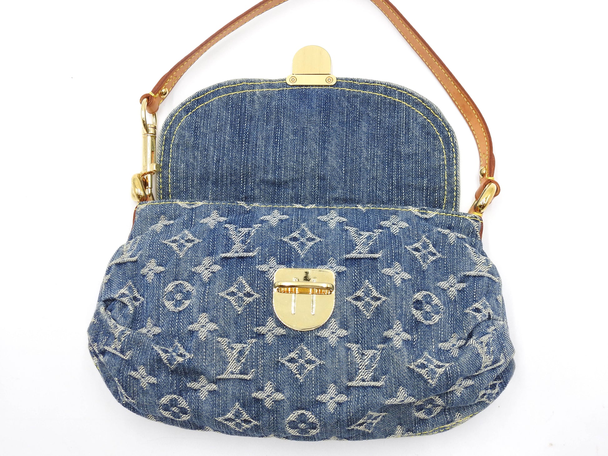 LOUIS VUITTON Mini Pleaty Monogram Denim Shoulder Hand Bag Blue M95050